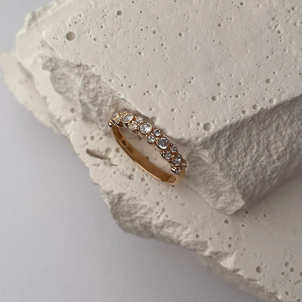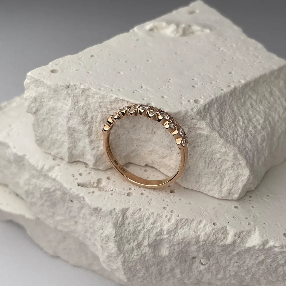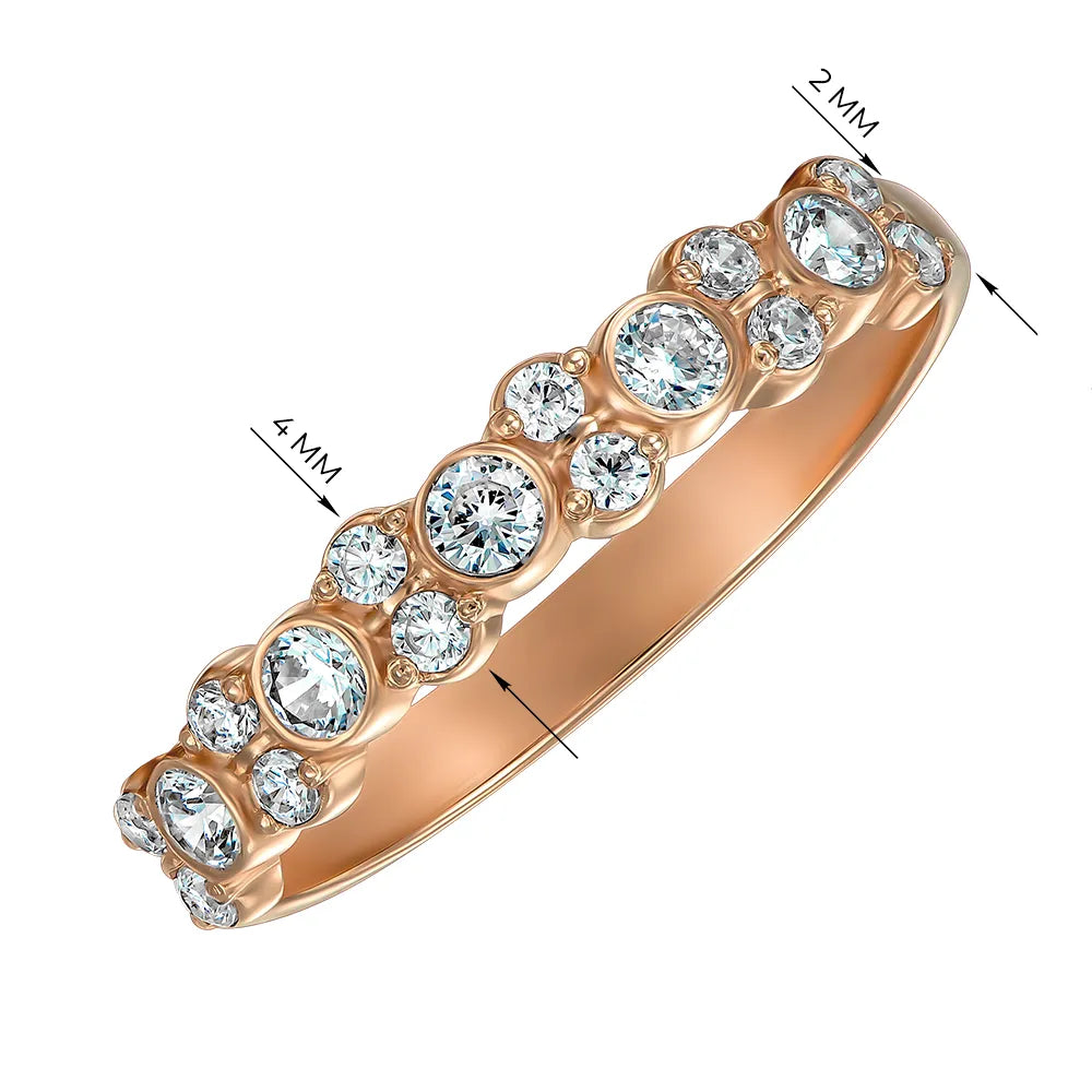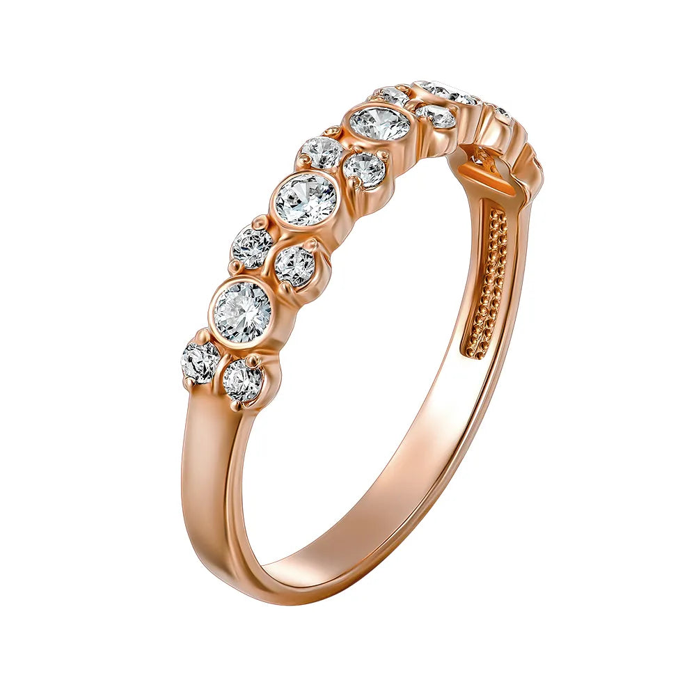 The exquisite 585 red gold emphasizes the elegance of every line of this ring. The rolled cubic zirconias, cut in the form of 12 circles with a total weight of 0.339 carats and 5 additional circles with a weight of 0.475 carats, create a mesmerizing effect, emphasizing the brilliance of the jewelry.