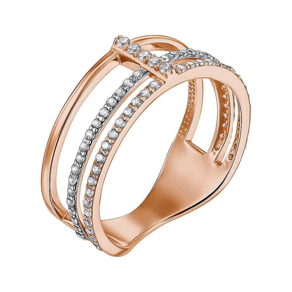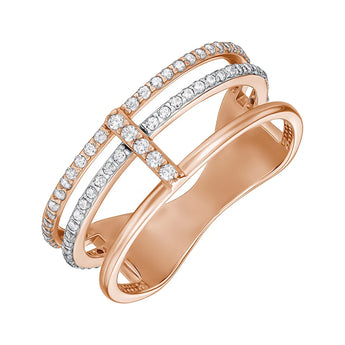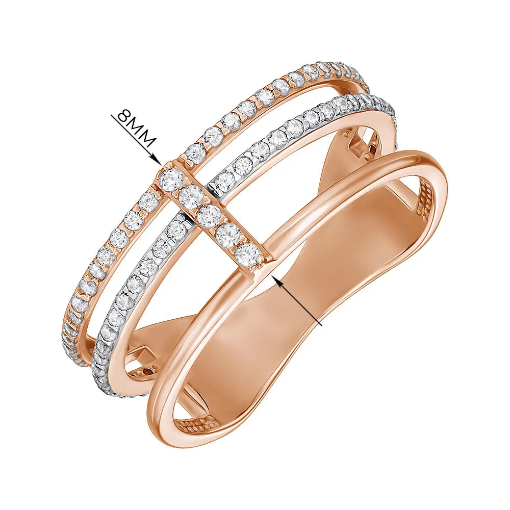 Red gold ring with cubic zirconia and rhodium plating 18342/01/1/36