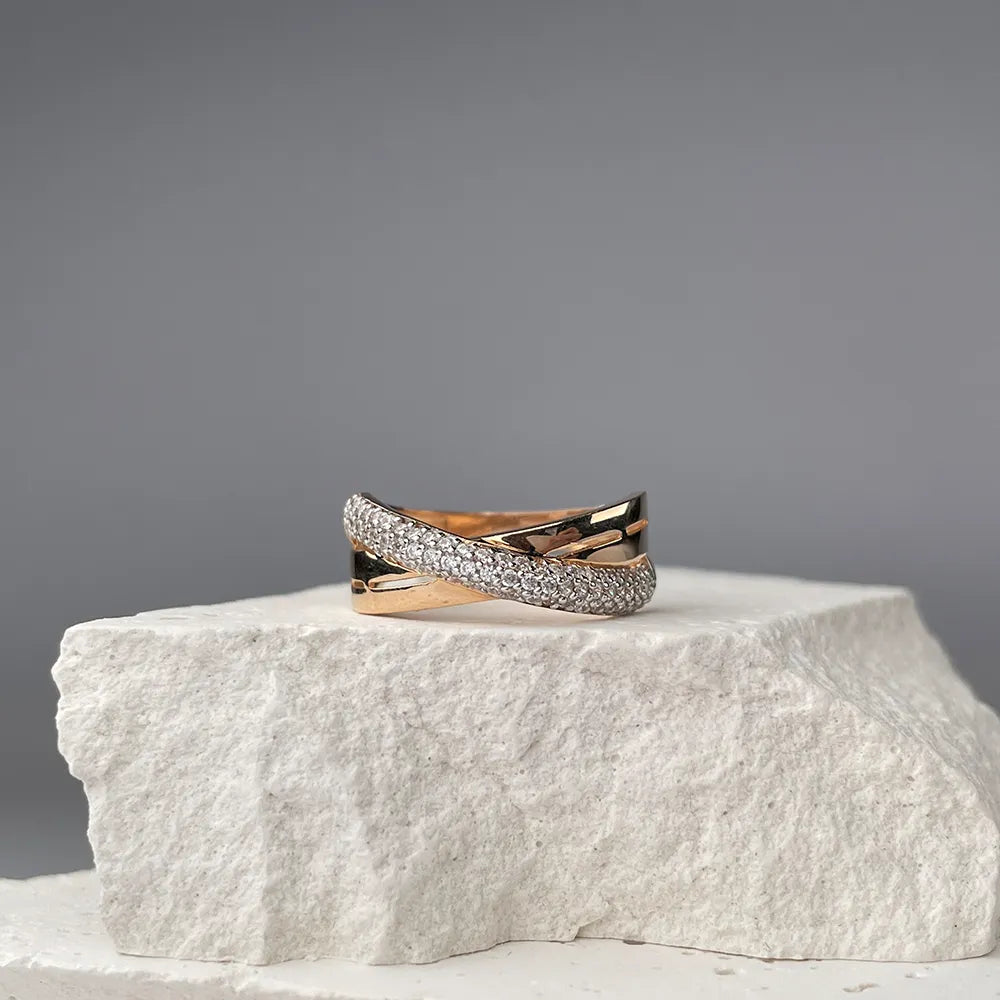 Red gold ring with cubic zirconia and rhodium plating P-521-R/01/1