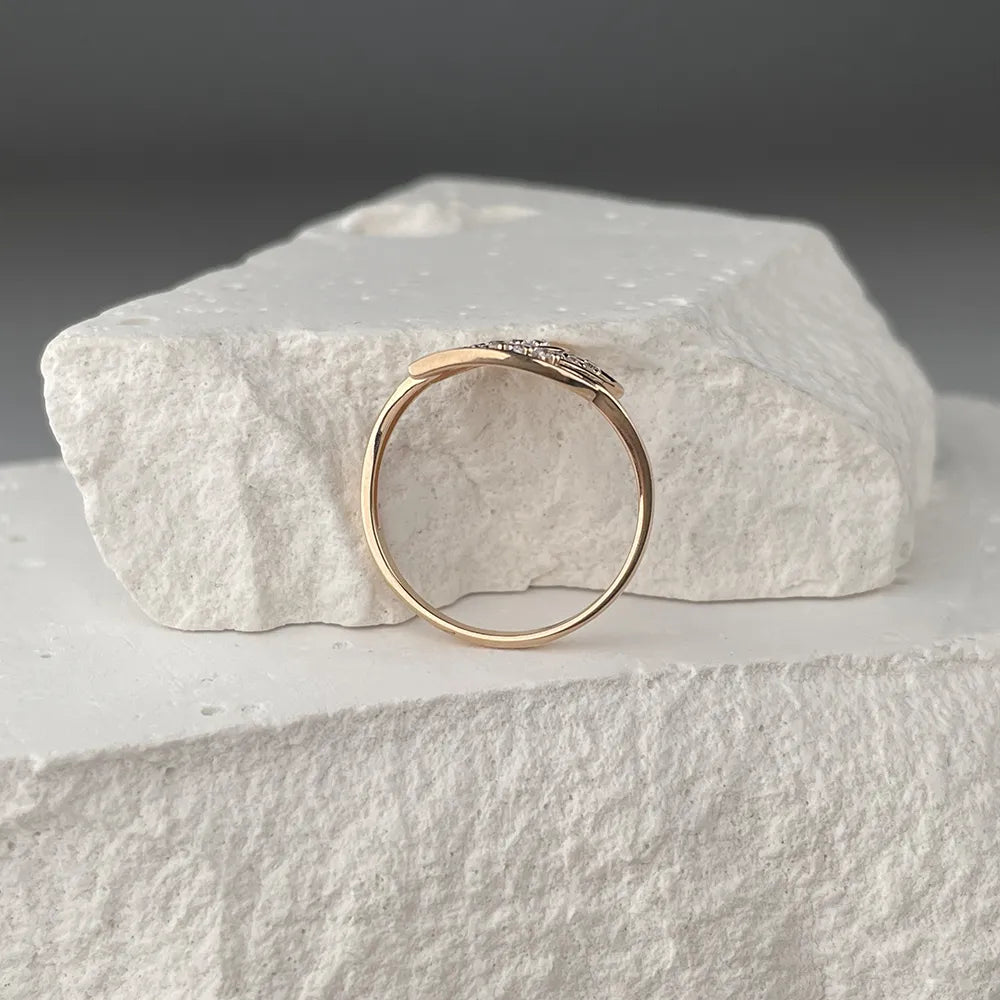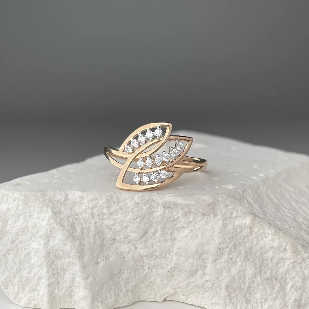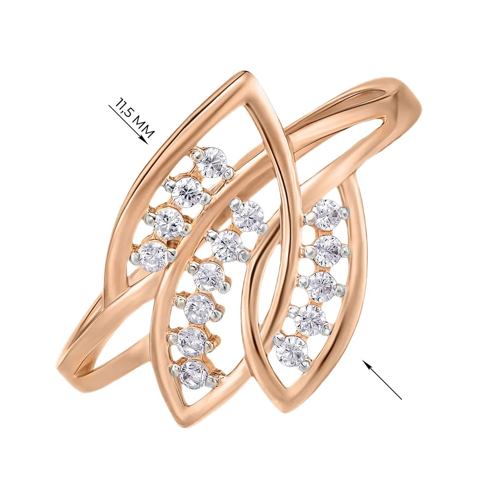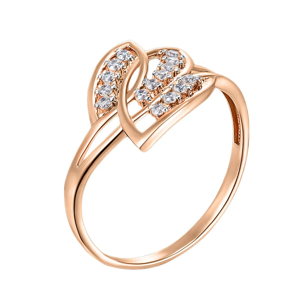 This ring is not just a decoration, but a true symbol of attention and care. Its exquisite design with interweaving and scattering of stones emphasizes the individuality and femininity of the owner. The delicate red shade of gold combined with white cubic zirconia creates an atmosphere of romance and solemnity.