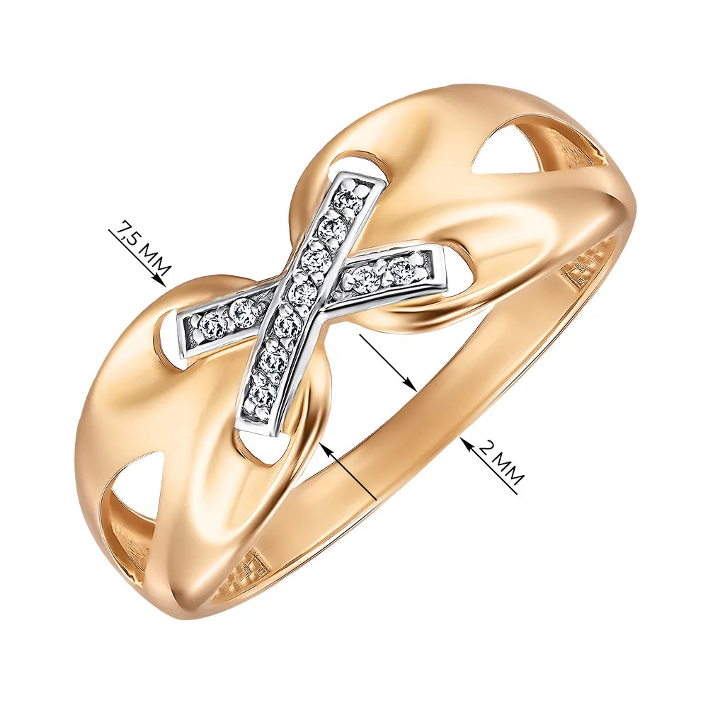 Combined gold ring with cubic zirconia 13914/01/1/42