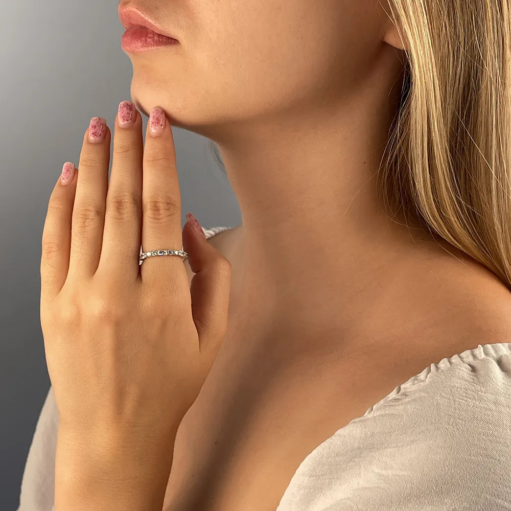 The 925 sterling silver ring is a stylish and elegant piece of jewelry that is suitable for any occasion. Made of high-quality silver, it is highly durable and can retain its shine for many years. Its classic design makes the ring versatile, allowing it to be combined with other jewelry. Silver gives the ring an elegant look, making it the perfect addition to your look. A great choice for those who appreciate style, durability and luxury in every element. The jewelry is complemented by an insert, which gives it a special charm and sophistication.