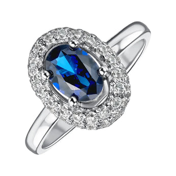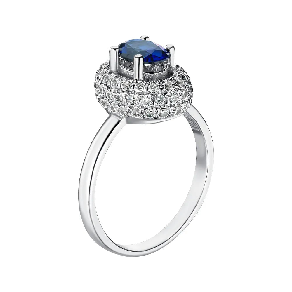 Silver ring with synthesized sapphire and cubic zirconia 00200/12/1/1006