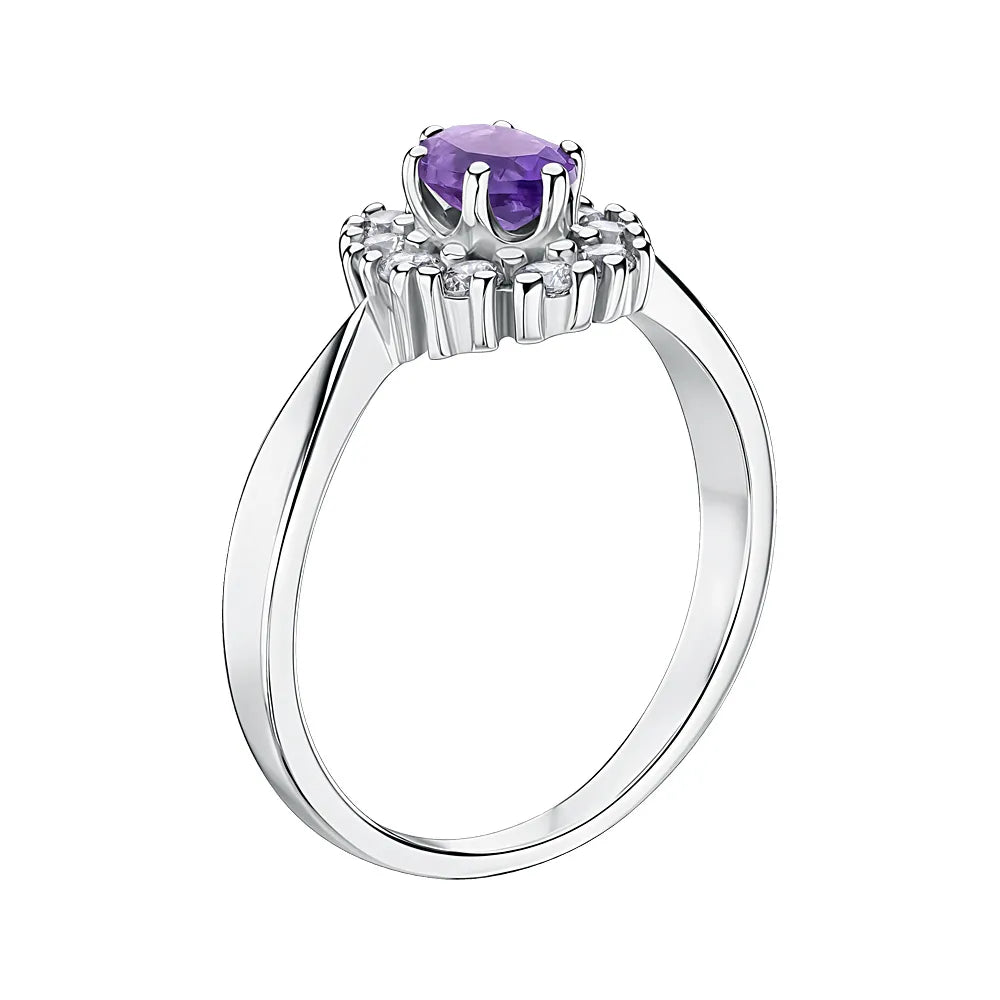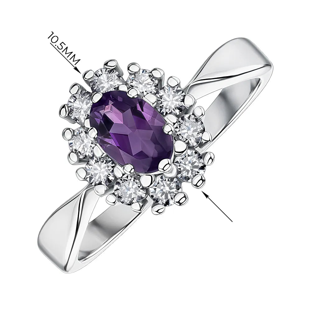 Silver ring with amethyst and cubic zirconia 00844/12/1/5903