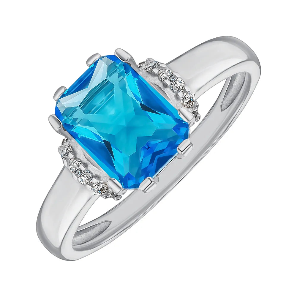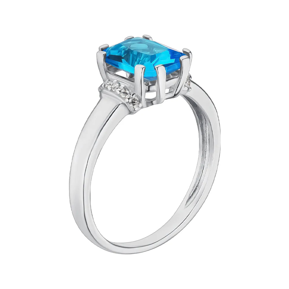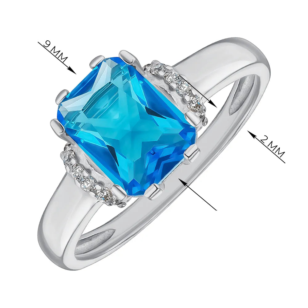 Silver ring with blue quartz and cubic zirconia 1266/1р-QSWB