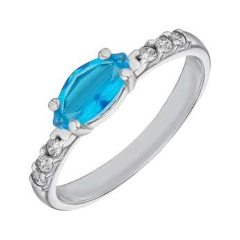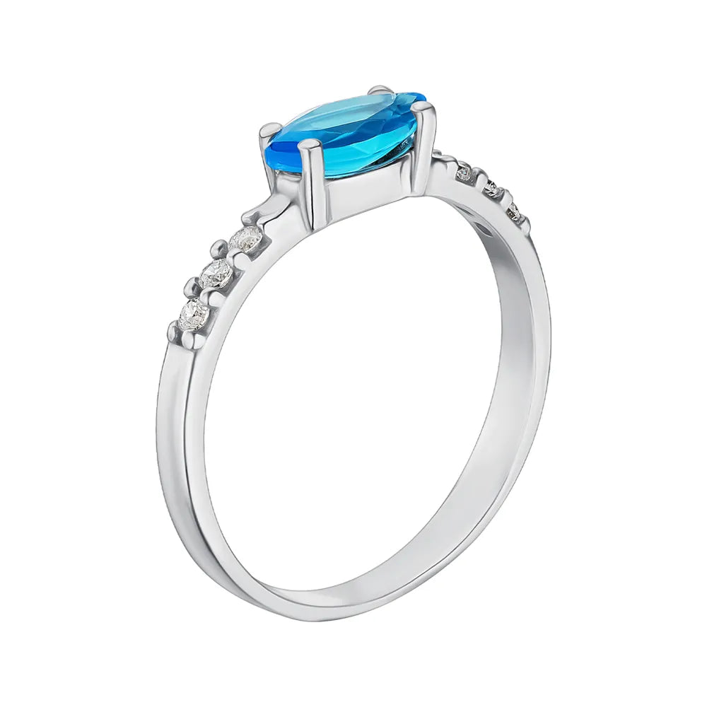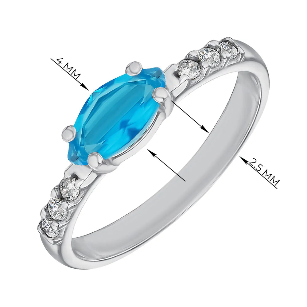 Silver ring with blue quartz and cubic zirconia 1309/1р-QSWB