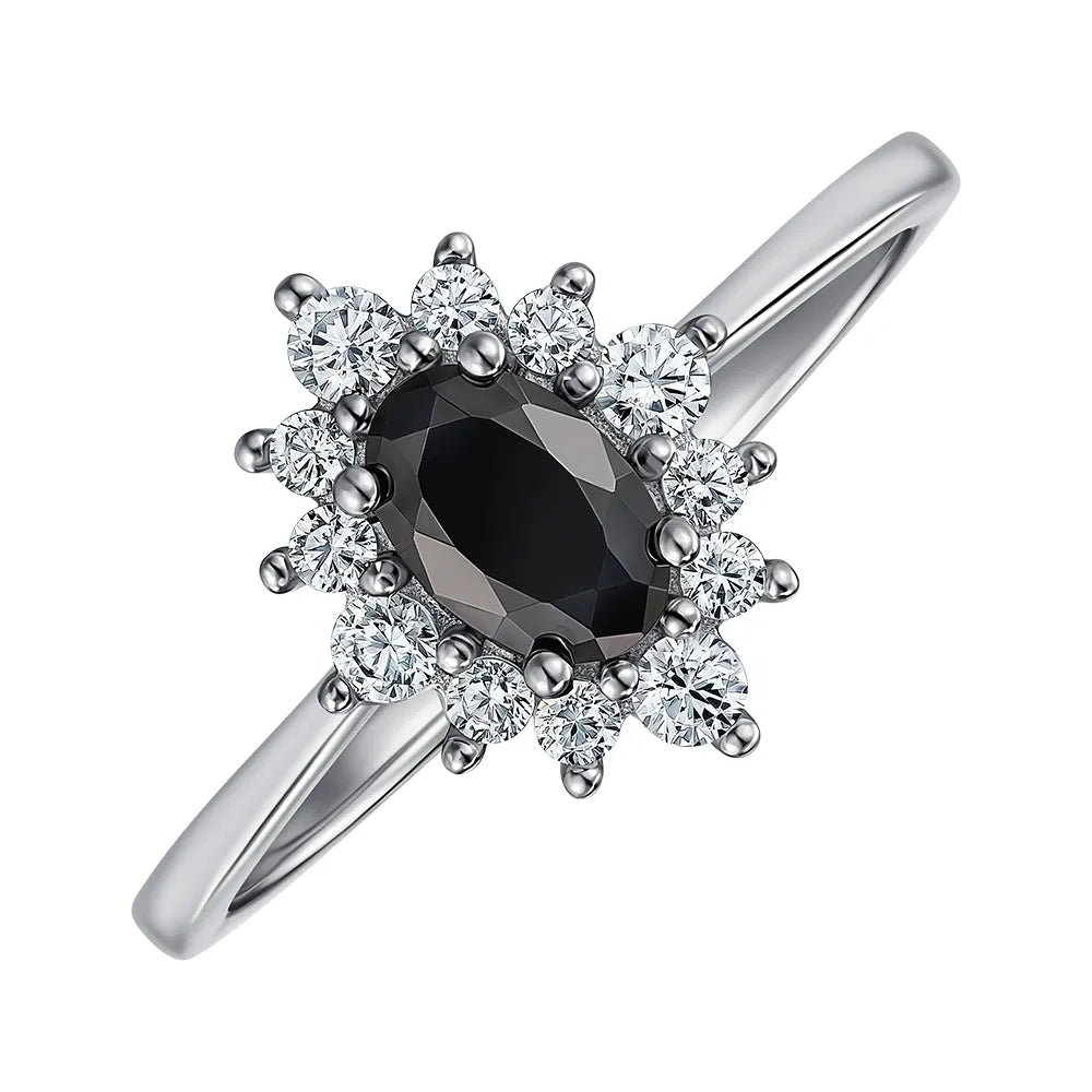 Silver ring with black and white cubic zirconias ML14491A-R/12/7
