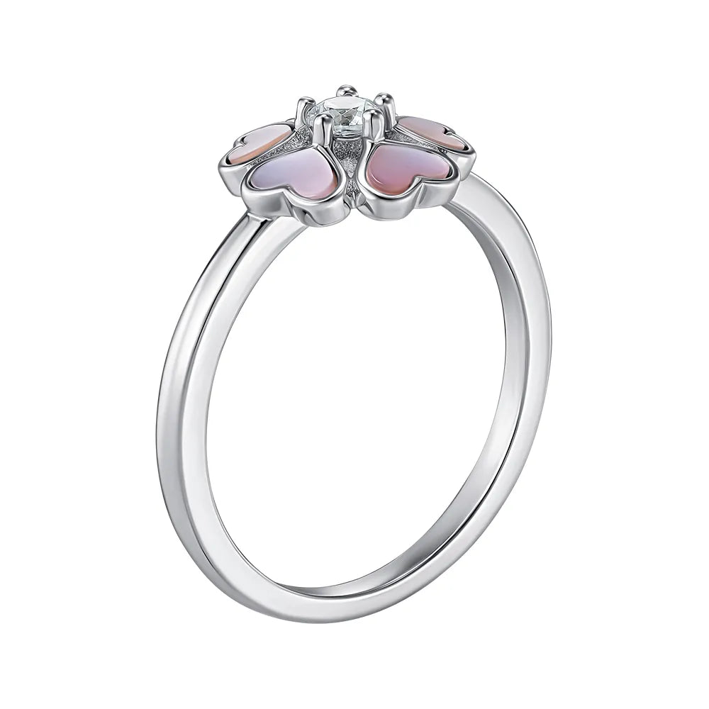 Silver ring with cubic zirconia and mother-of-pearl ML14411A-R/12/1090