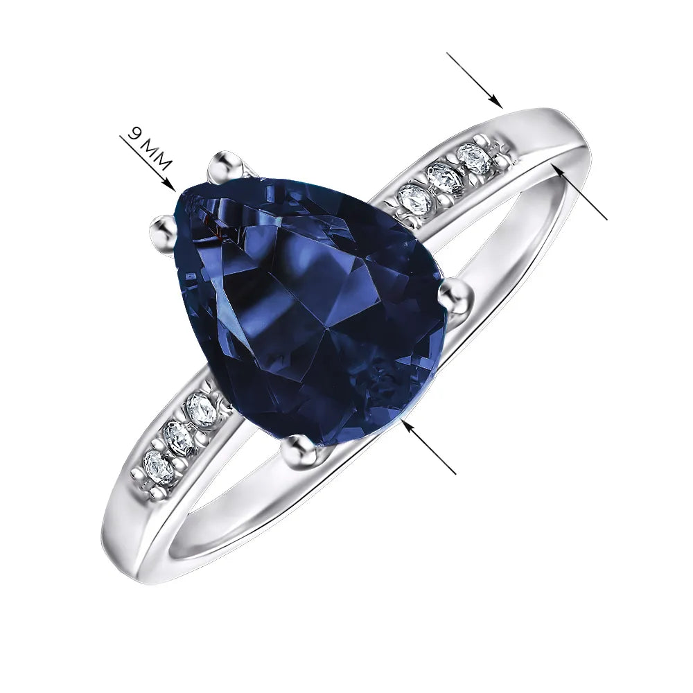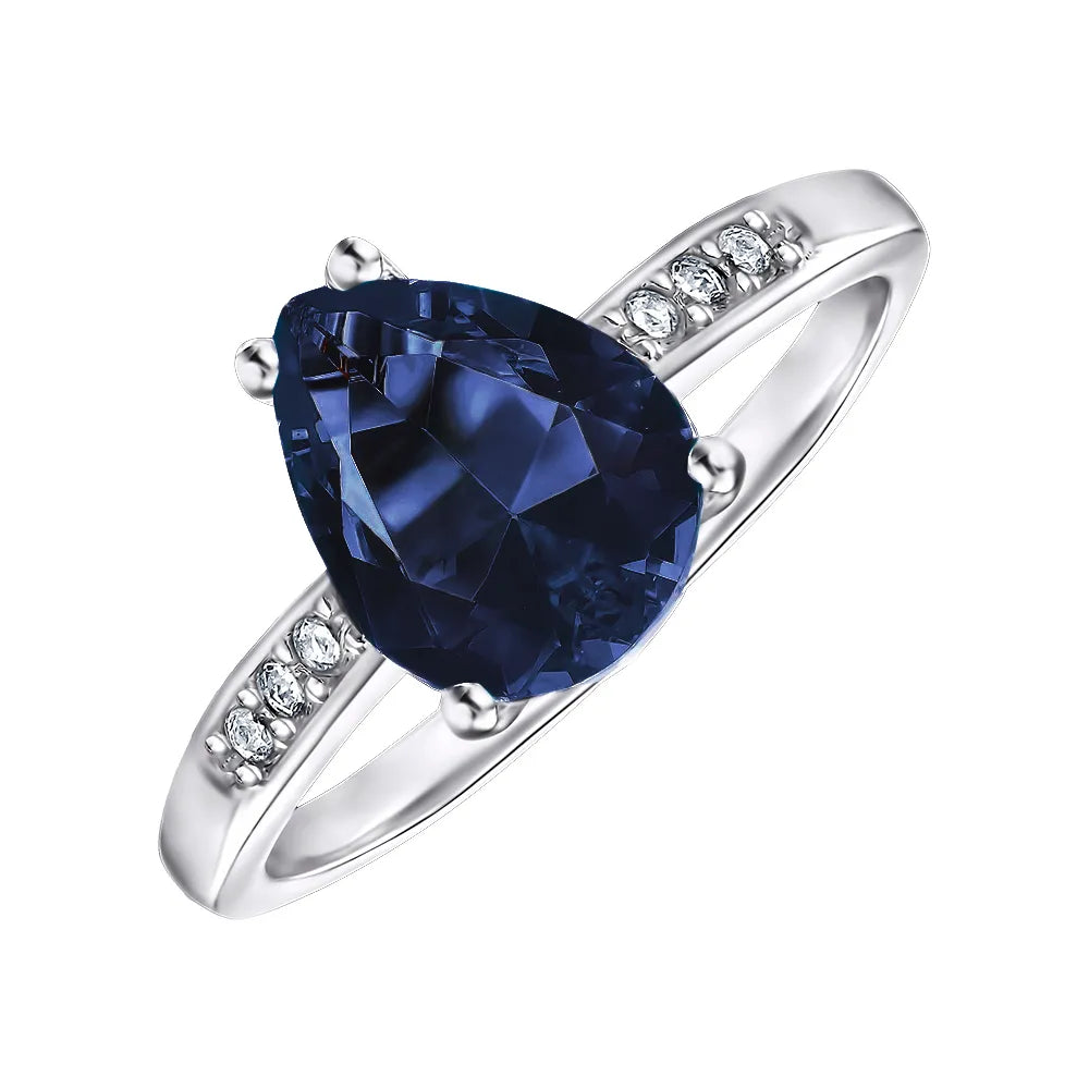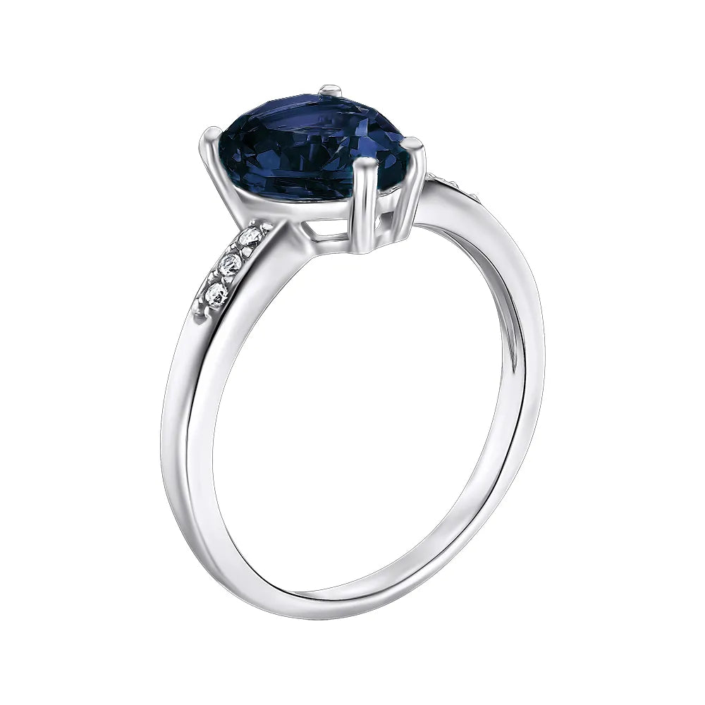 Silver ring with hydrothermal sapphire and cubic zirconia 1304/1p-HSPH