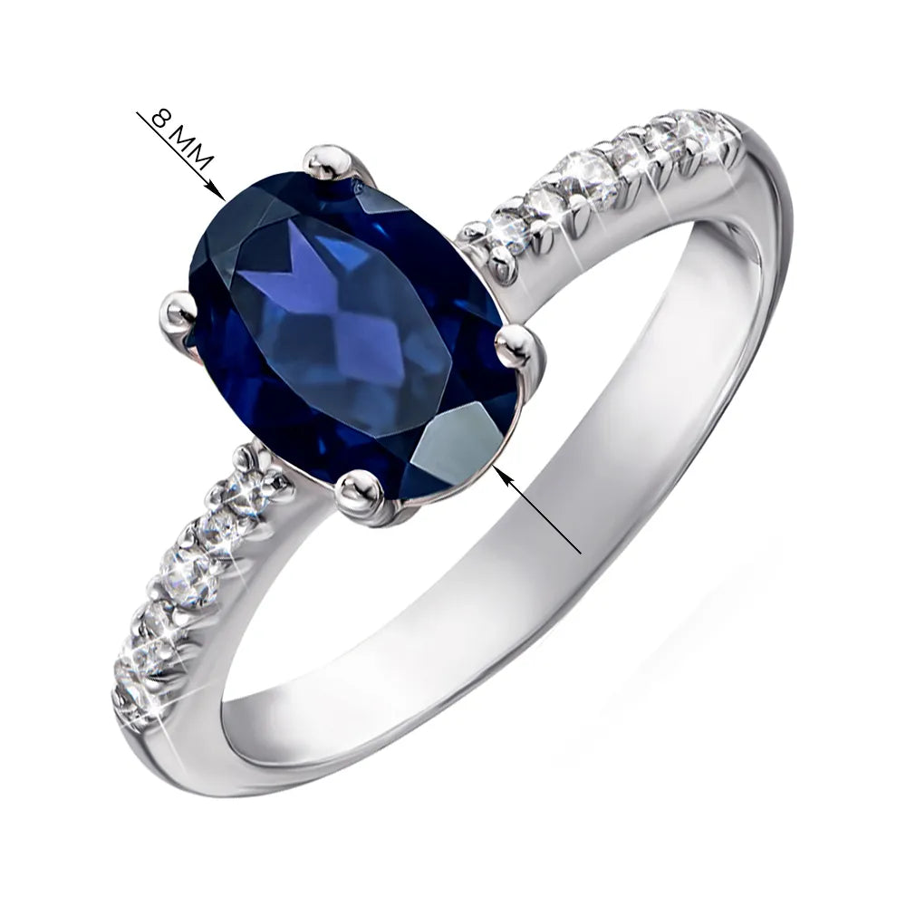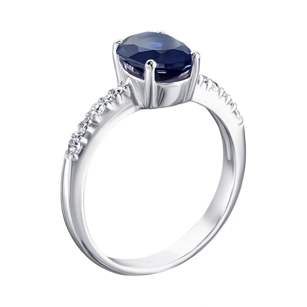 Silver ring with hydrothermal sapphire and cubic zirconia 1339/1р-HSPH
