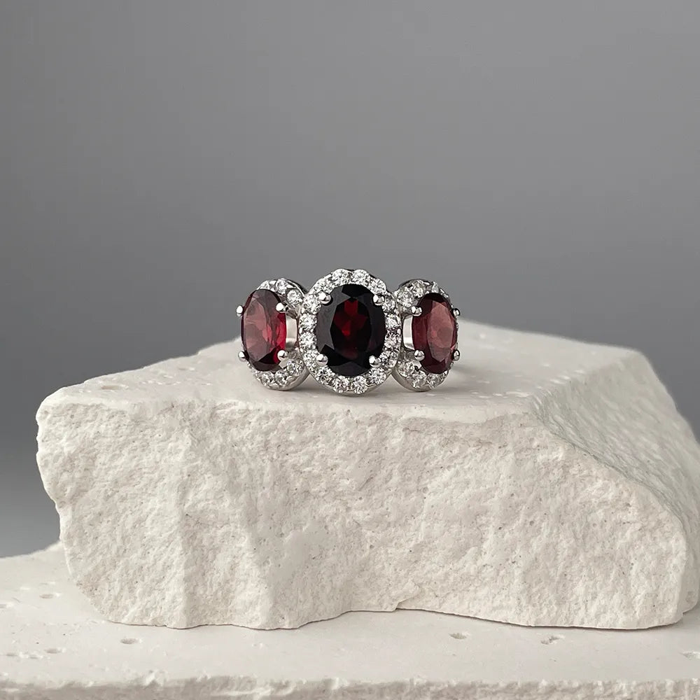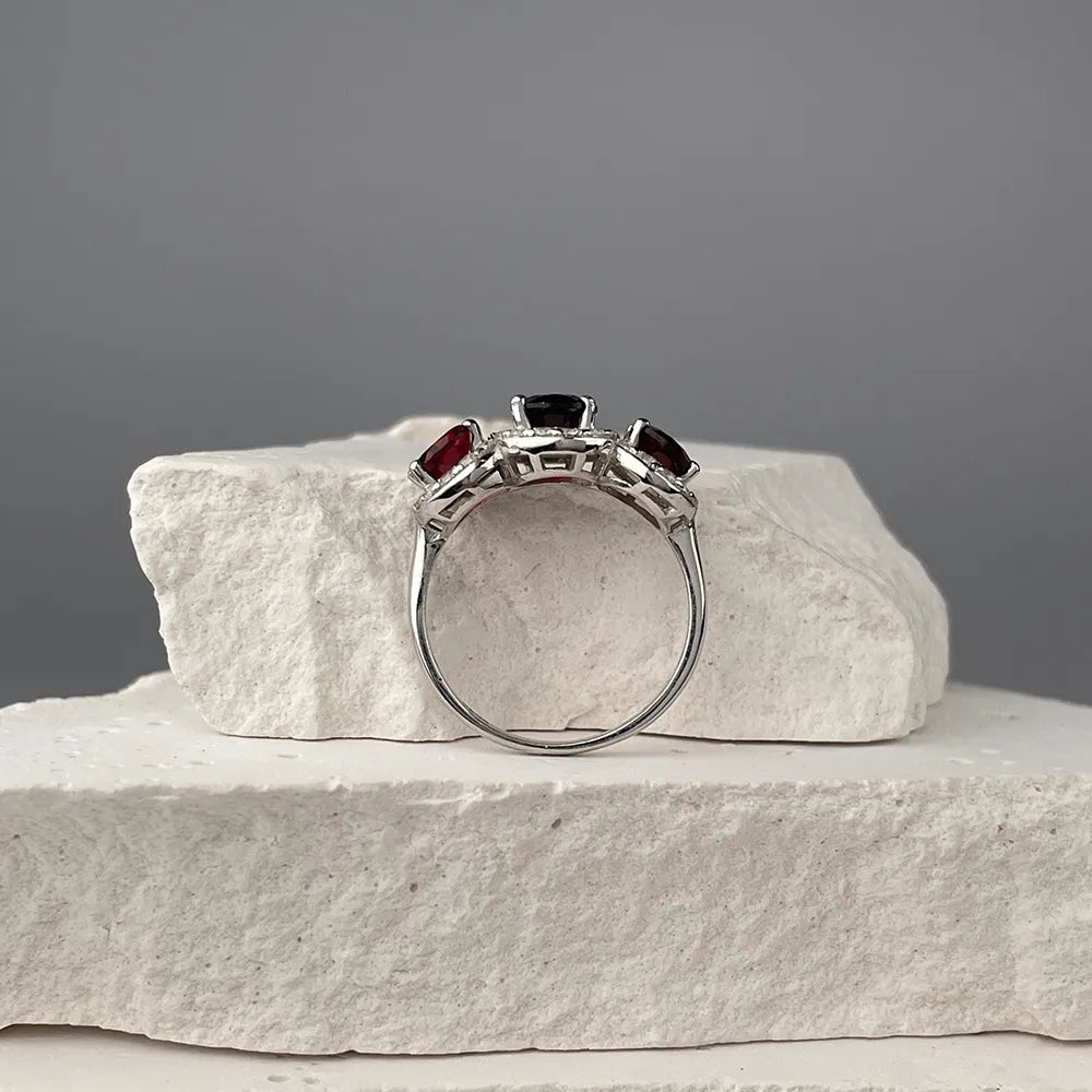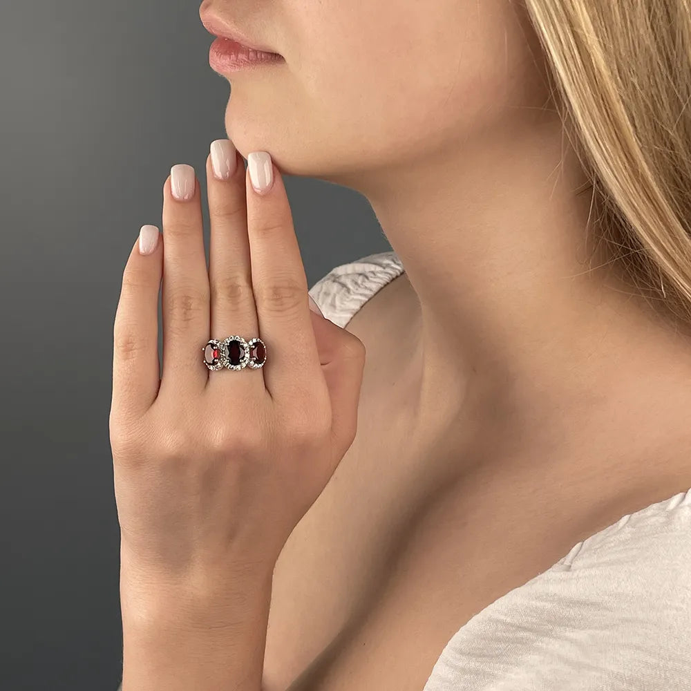 Silver ring with garnets and cubic zirconias KRS_658-GR-R/12/16055