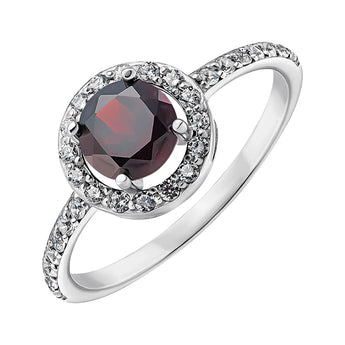 Silver ring with garnet and cubic zirconia 00851/12/1/5150