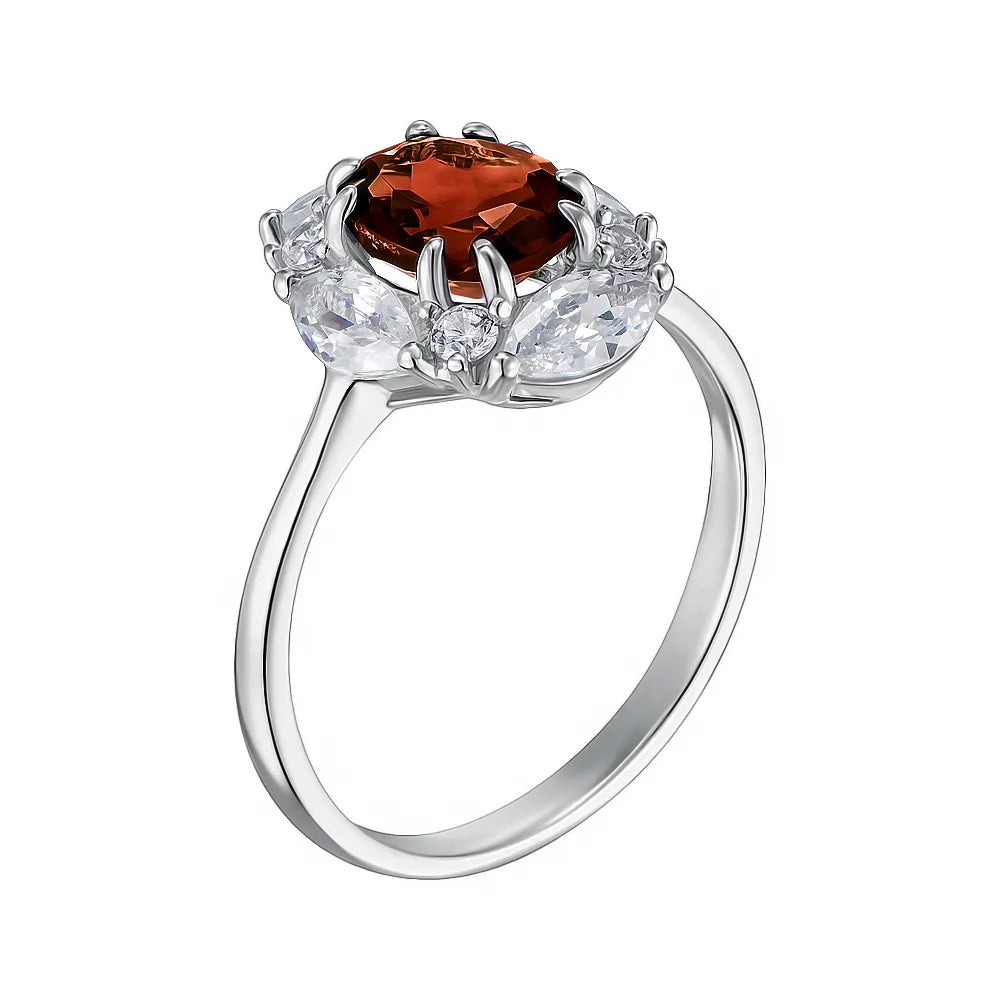 Silver ring with garnet and cubic zirconia KRS_660-GR-R/12/5050