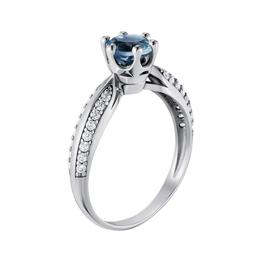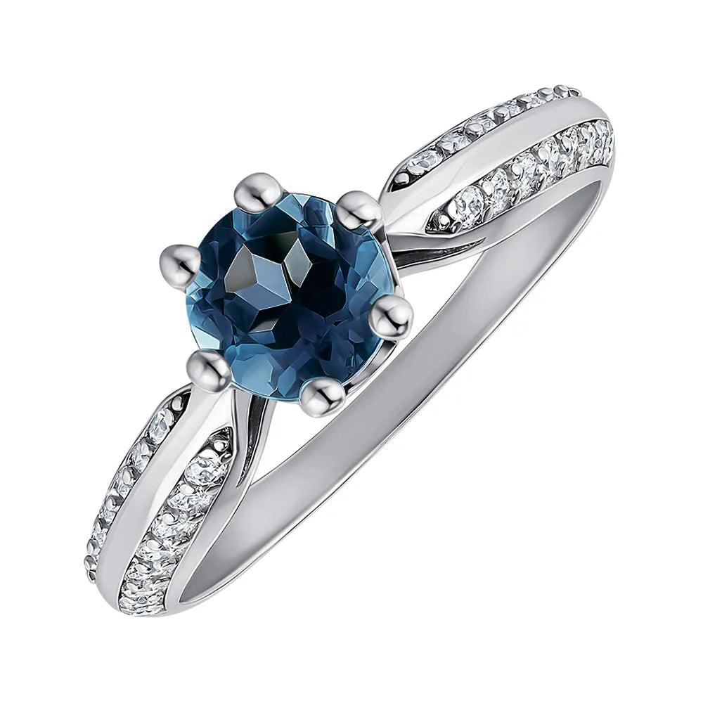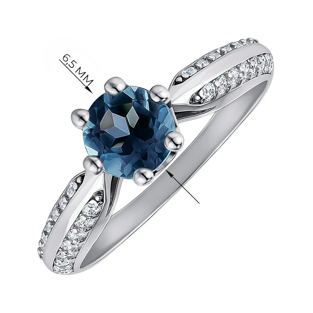 Silver ring with London topaz and cubic zirconia 1580/9р-TLB