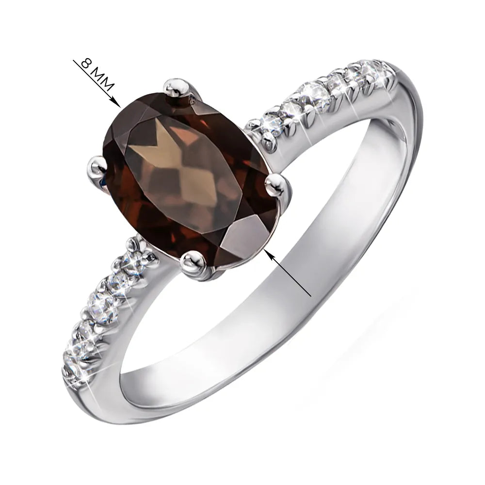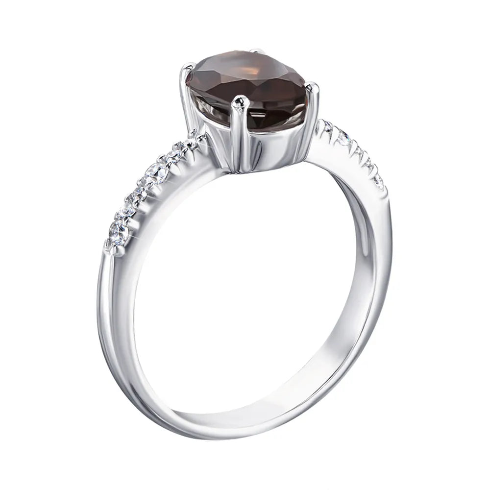 Silver ring with rauchtopaz and cubic zirconia 1339/1р-QSMK