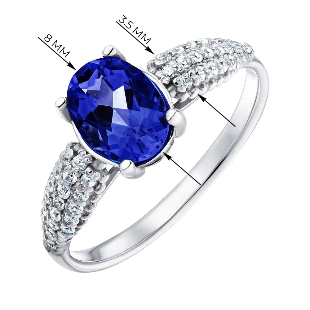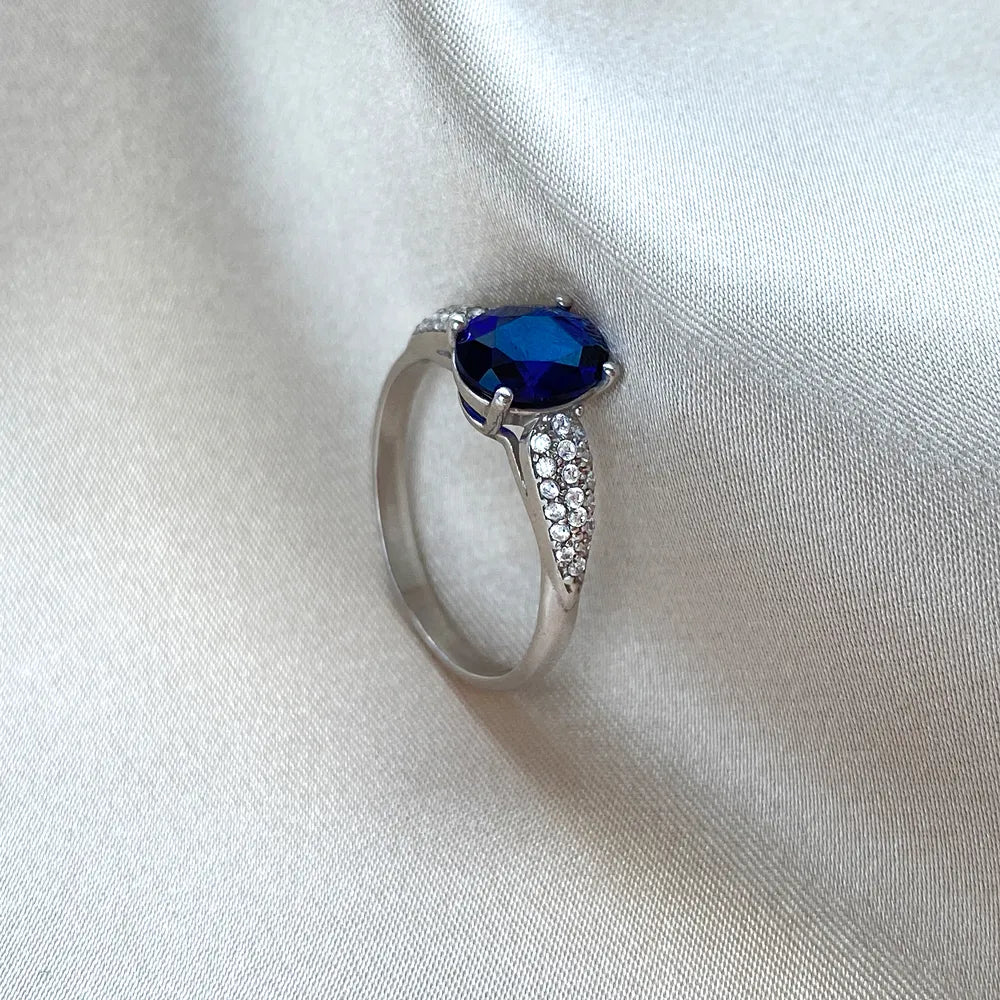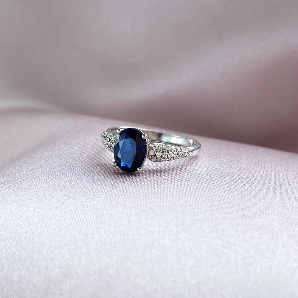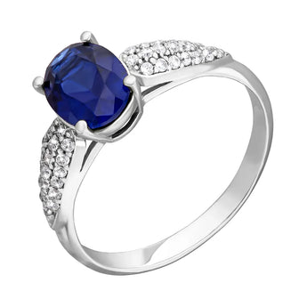 Silver ring with synthetic sapphire and cubic zirconia 00951/12/1/2214