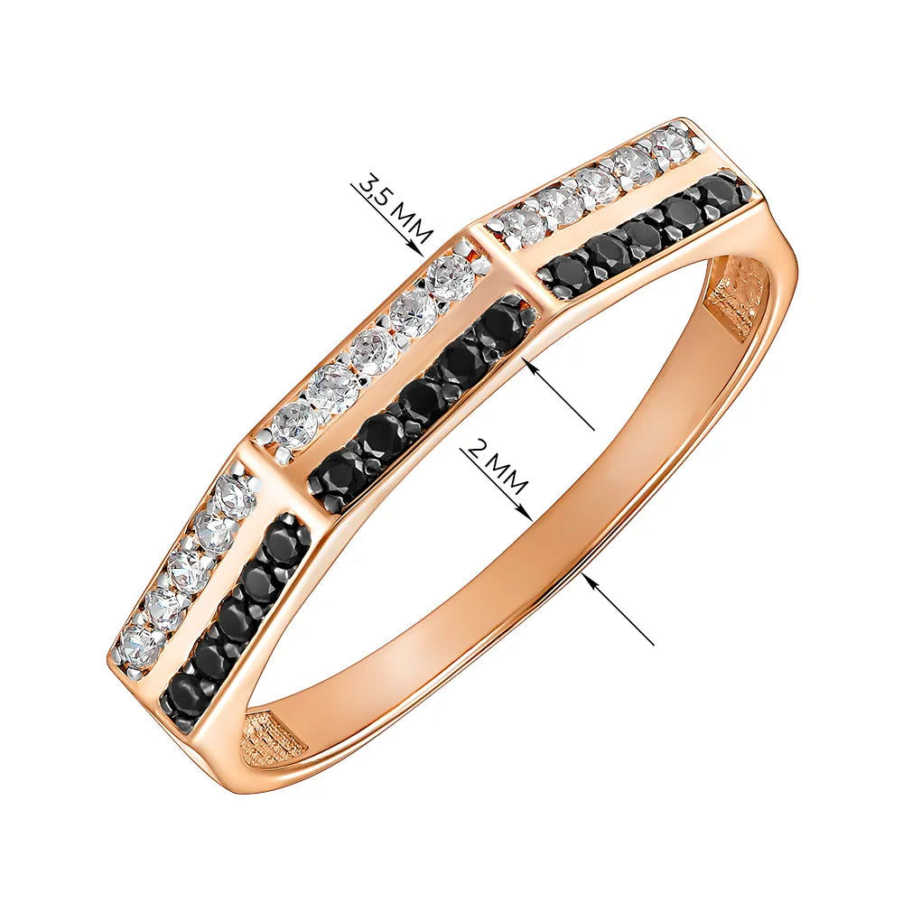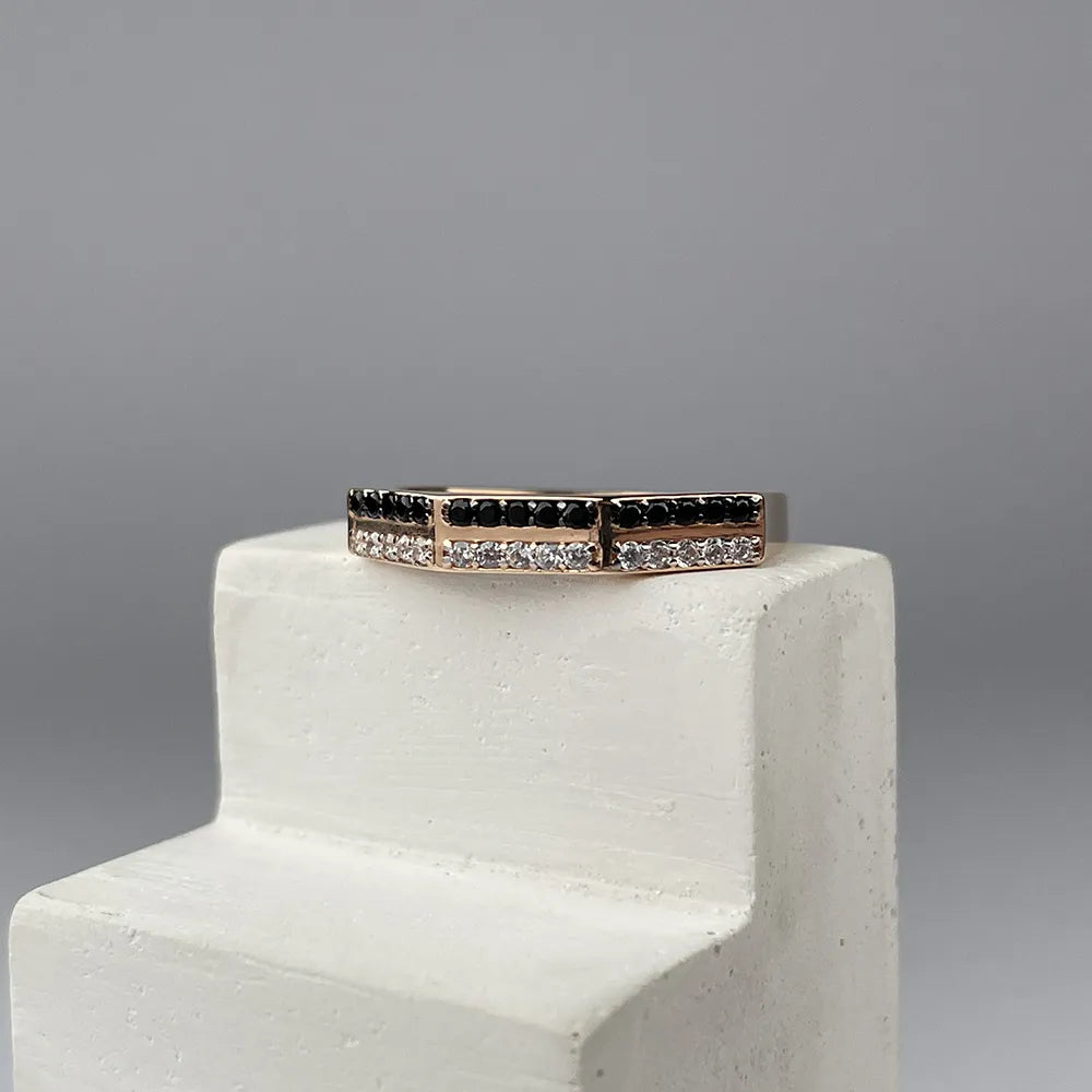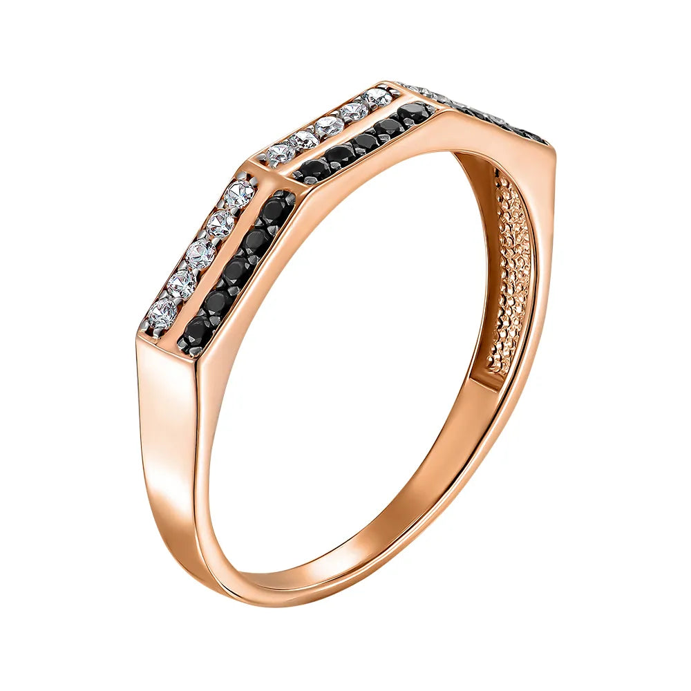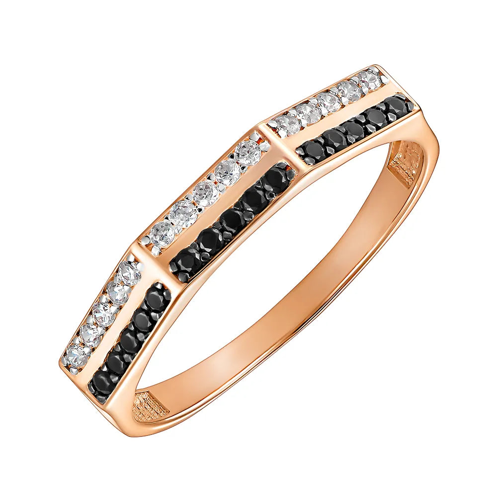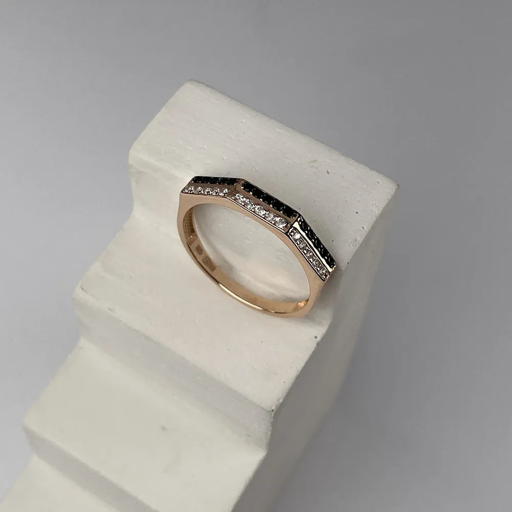 Red gold ring with black and white cubic zirconias 18615/01/1/146