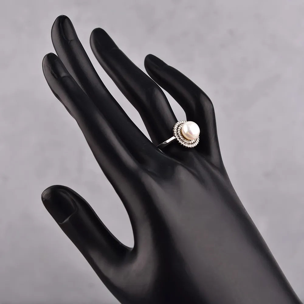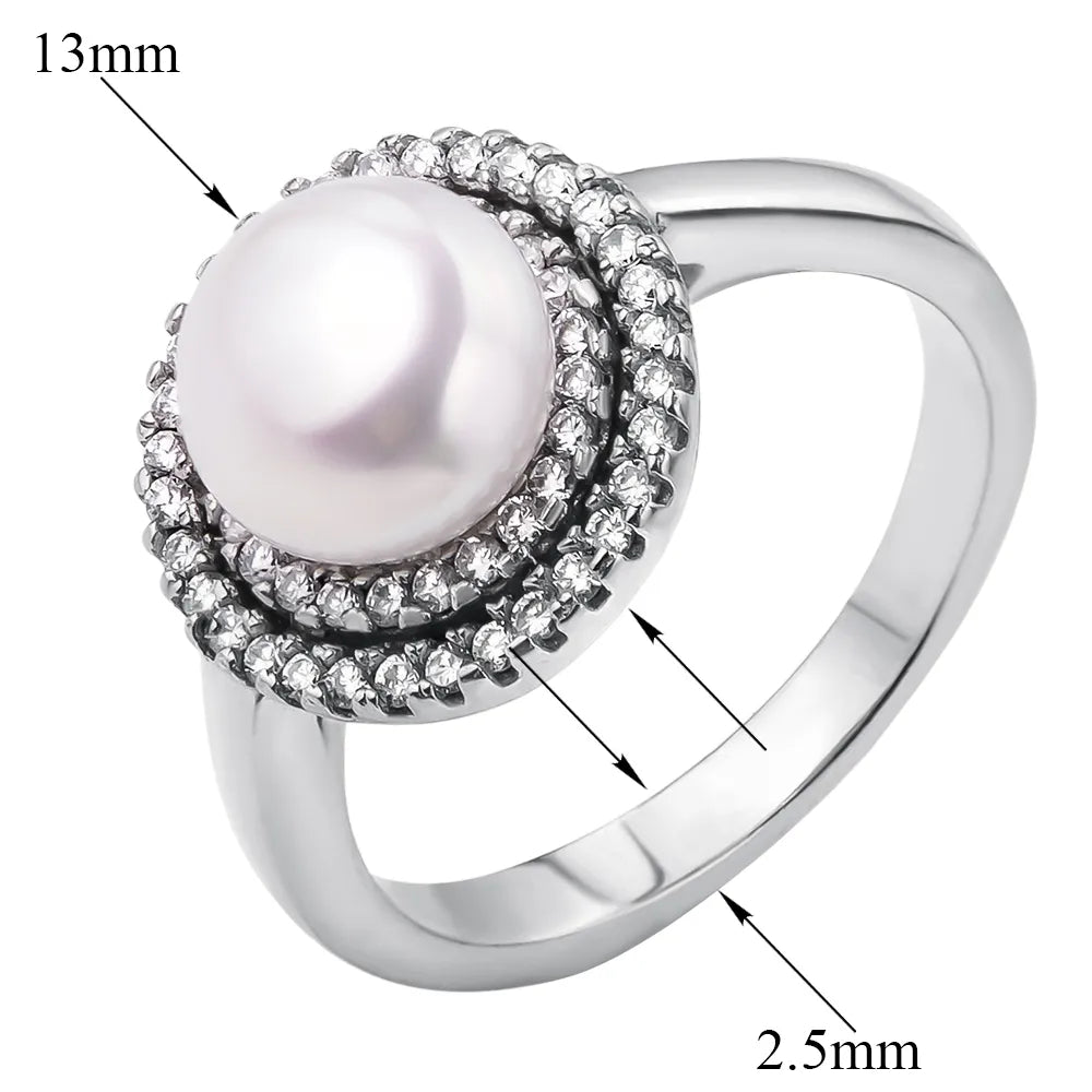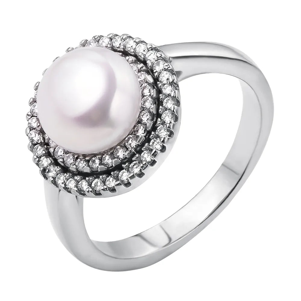 Silver ring with white pearls and cubic zirconias PSS0339-R