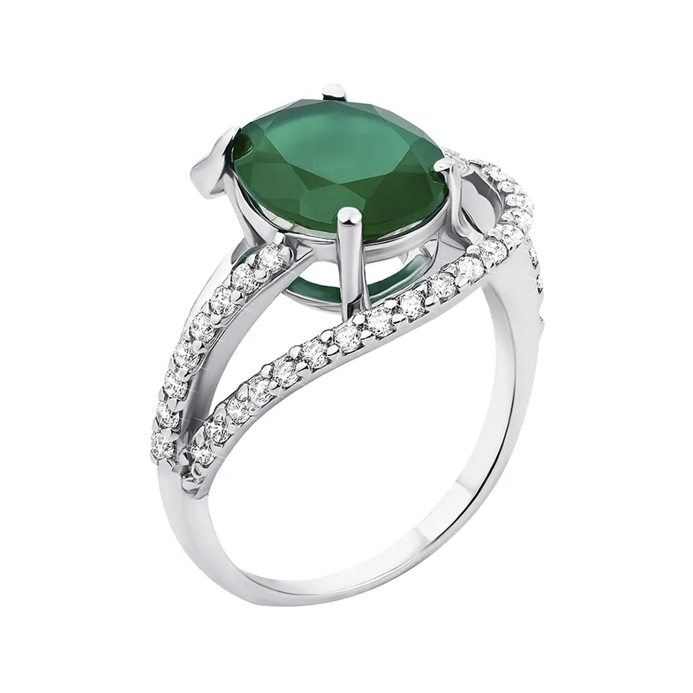 Silver ring with agate and cubic zirconia 1713/9р-GAG