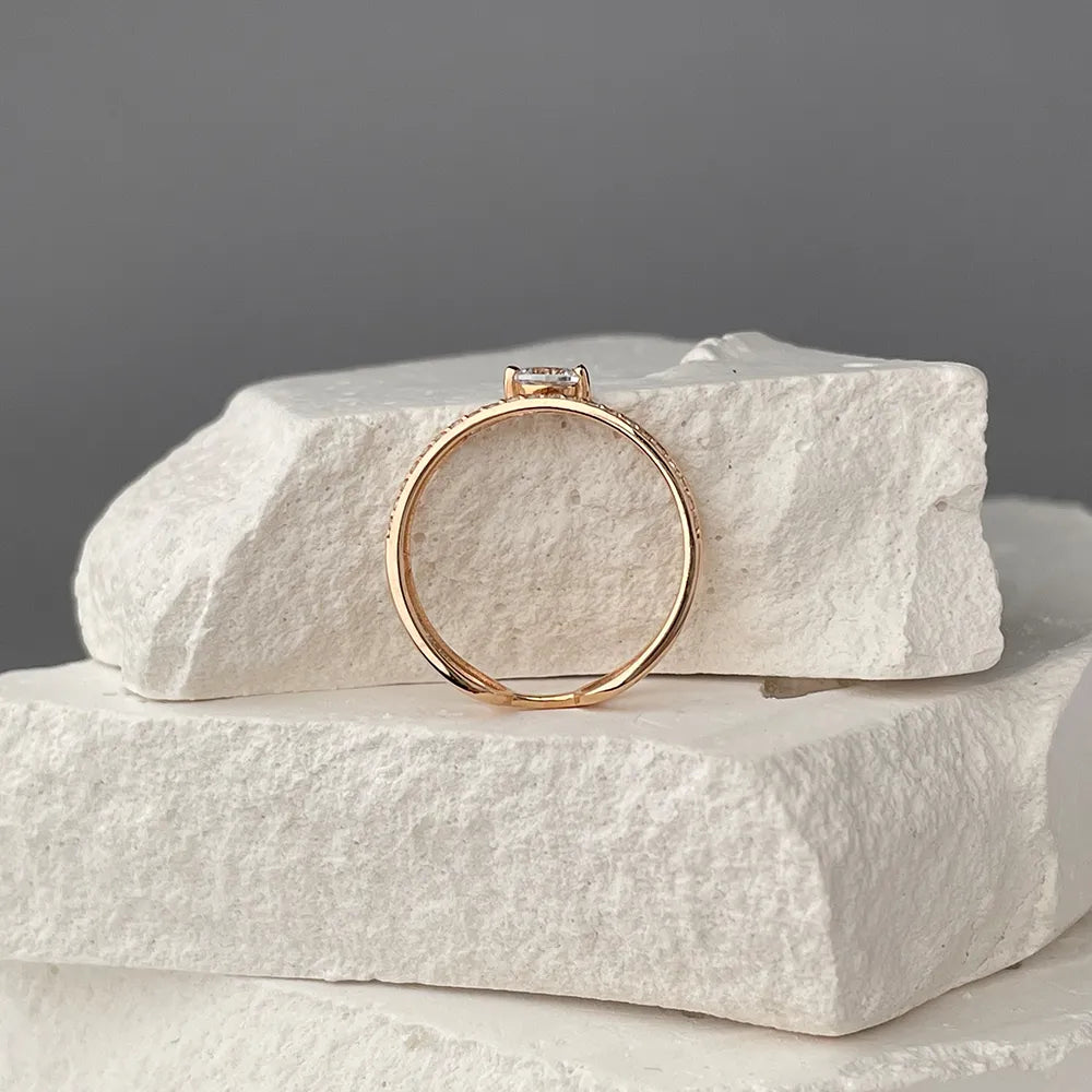 A 585 gold ring is an elegant piece of jewelry that combines classic luxury with modern design. Made of high-quality red gold, it has excellent durability and is able to retain its shine for many years. Choosing a gold ring will not only be a symbol of your style, but also a sign of important moments in life, such as an engagement or anniversary. Its elegant appearance and impeccable design make this ring a universal accessory for any situation. The jewelry is complemented by an insert, which gives it a special charm and sophistication.