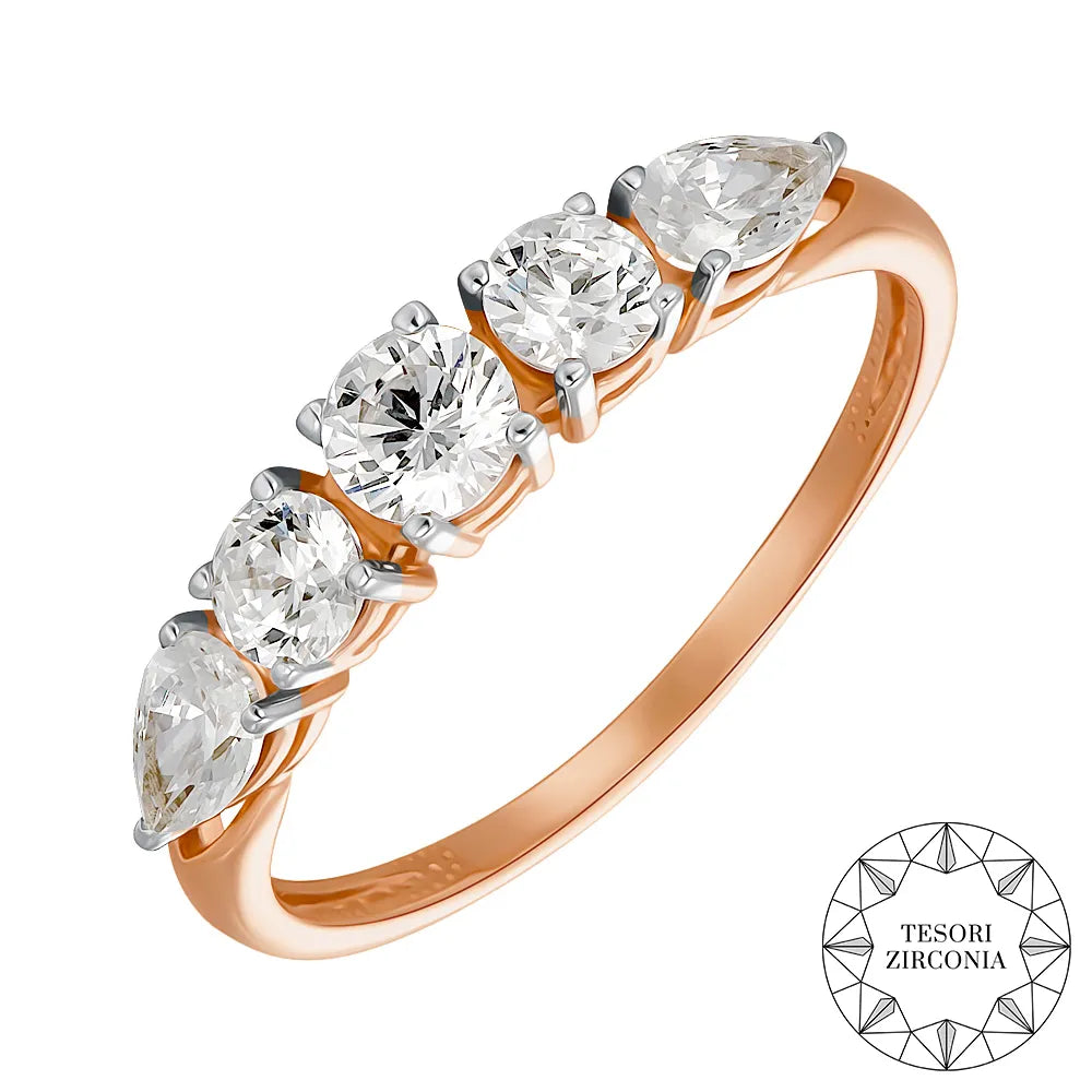 Red gold ring with Tesori Zirconia cubic zirconia and rhodium plating 13410/01/1/4426