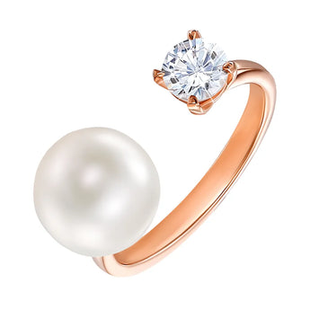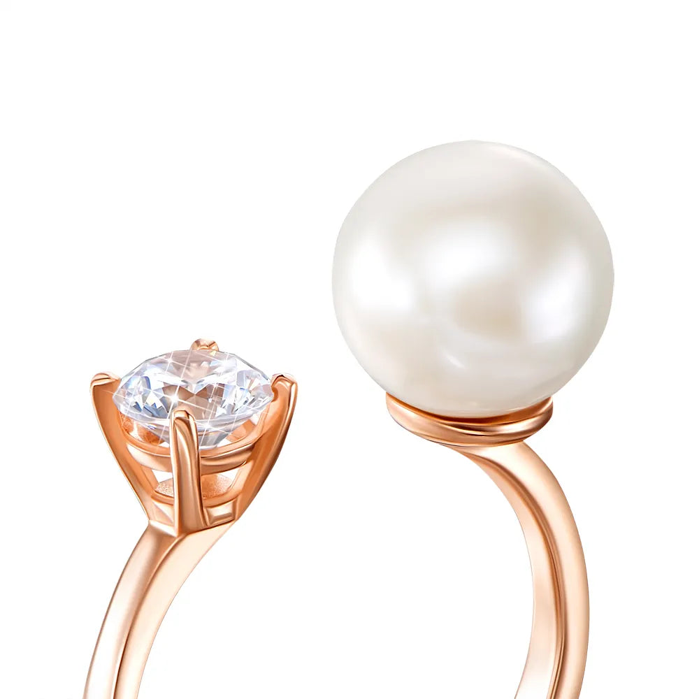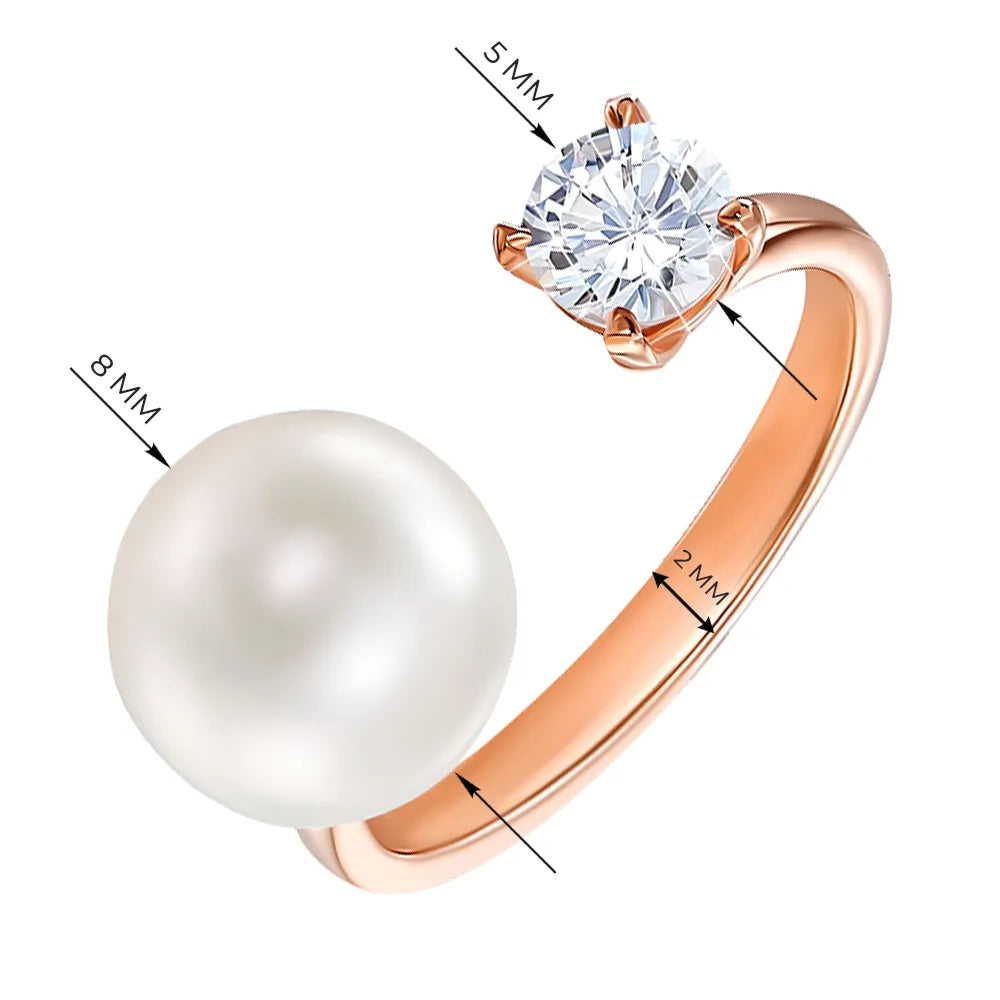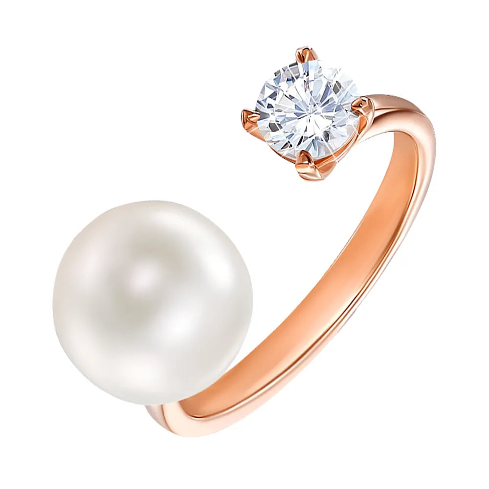 Red gold ring with pearl and cubic zirconia 13216/01/0/1155