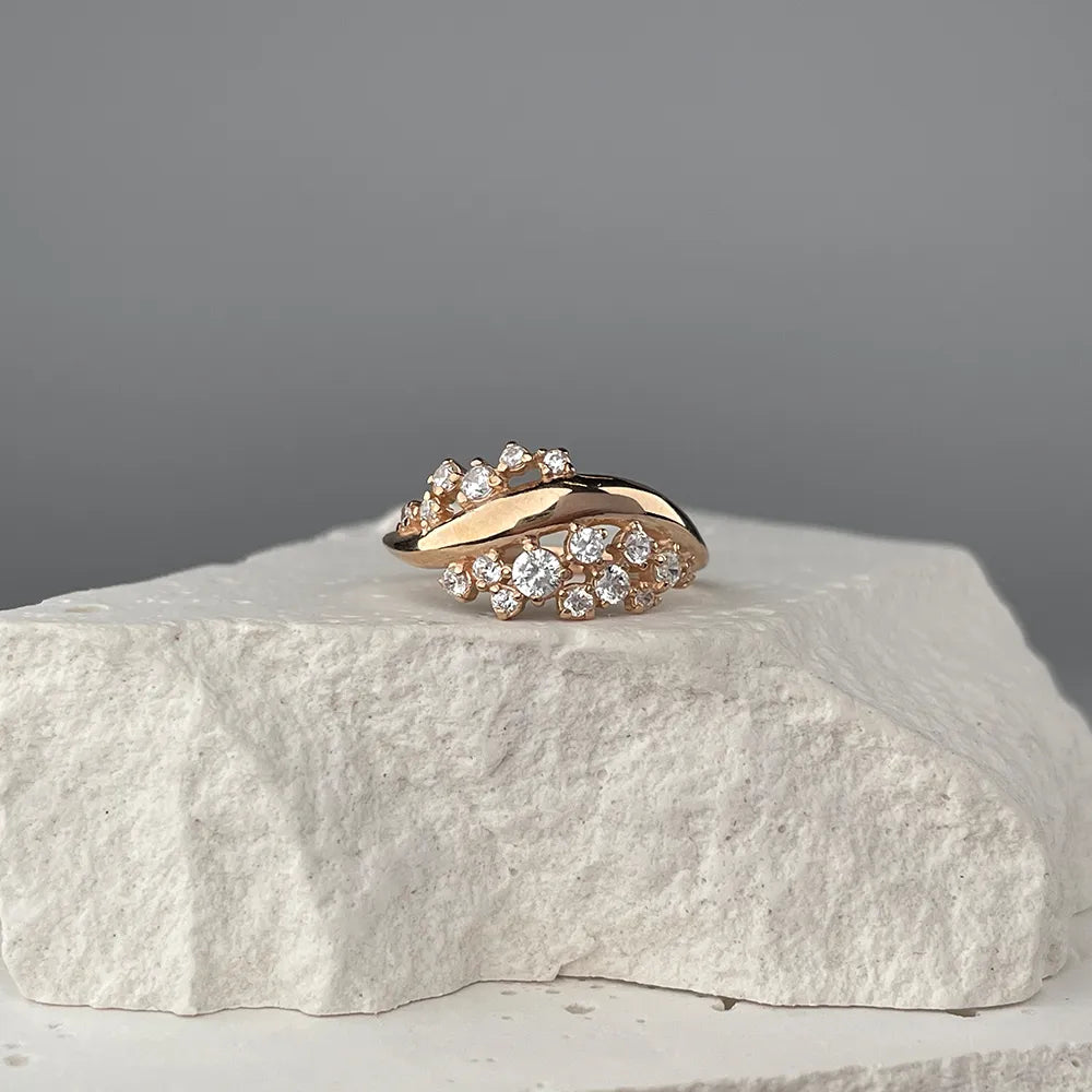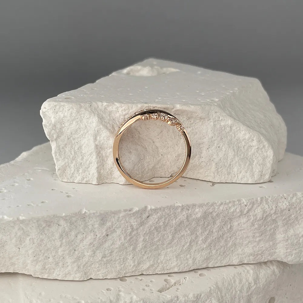 By purchasing a red gold ring with cubic zirconia in the "wave" style, you will appreciate the following advantages: