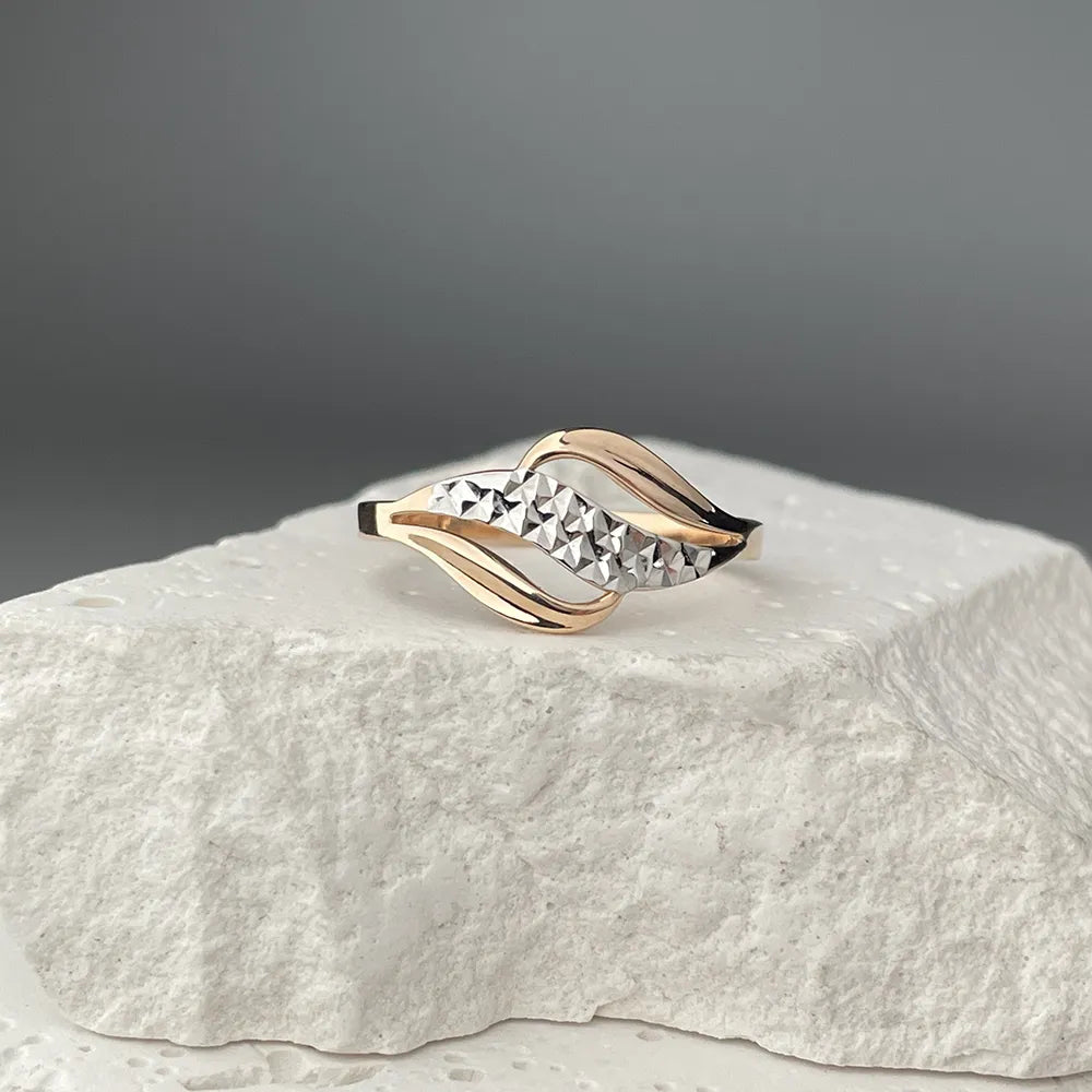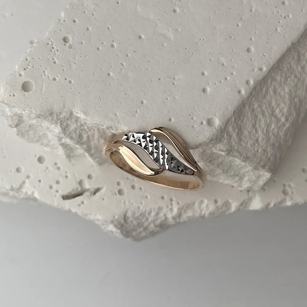 Mastery and perfection of formThe presented jewelry is not just an accessory, but a symbol of impeccable taste. The elegant ring made of 585 red gold is created using the diamond faceting technique, which gives the product a unique shine and play of light. The narrow profile emphasizes the tenderness and fragility of a woman's hand.