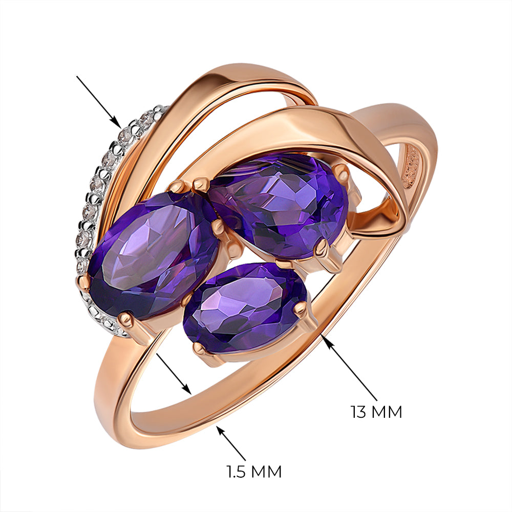 Red gold ring with amethyst and cubic zirconia 530304/01/1/6833