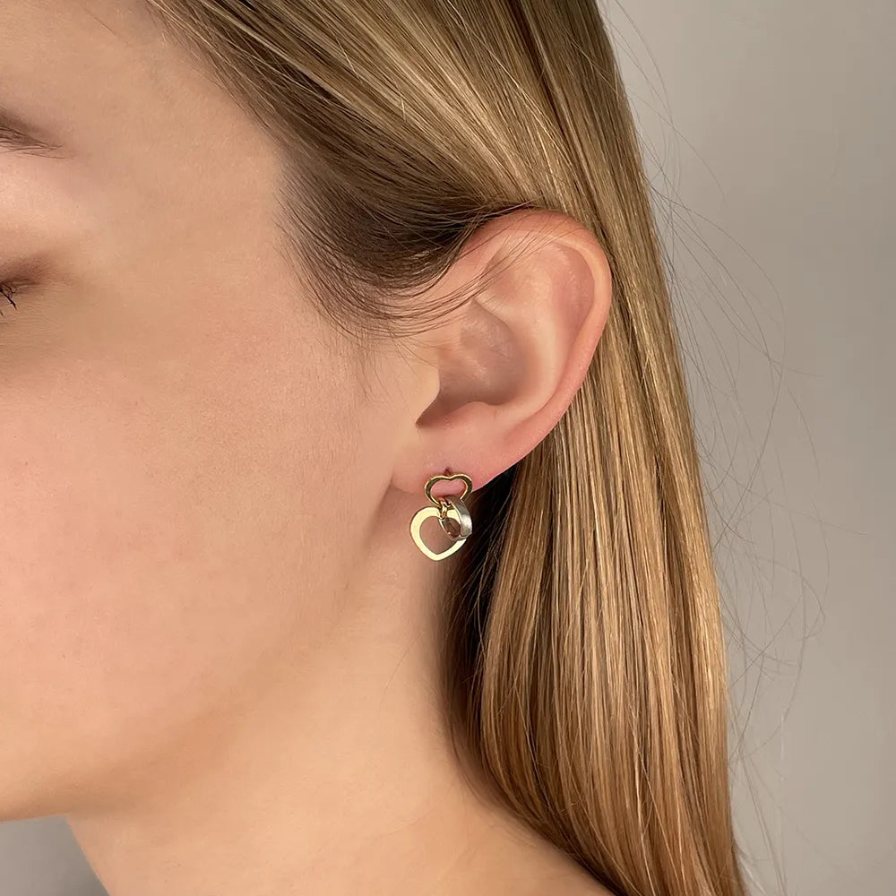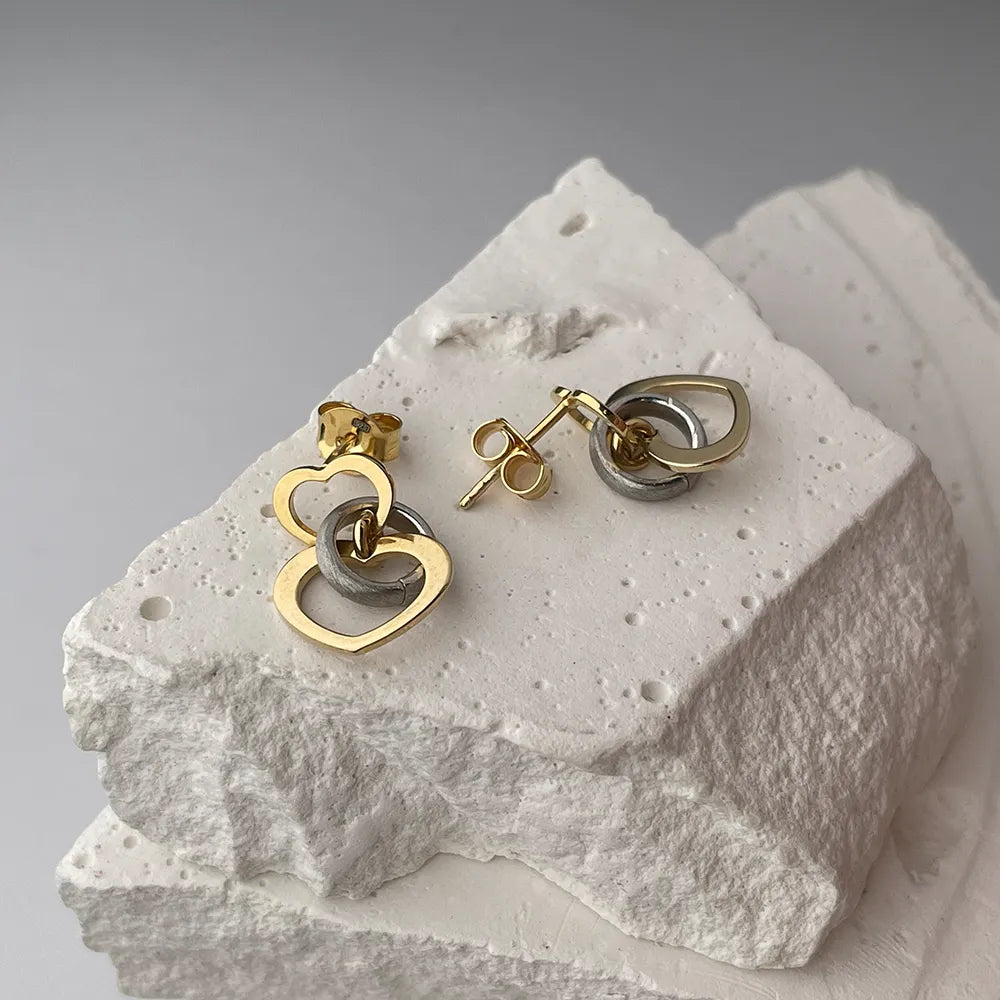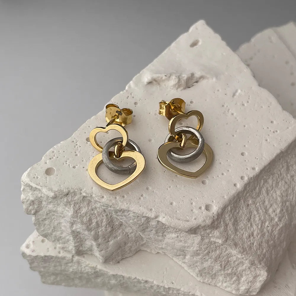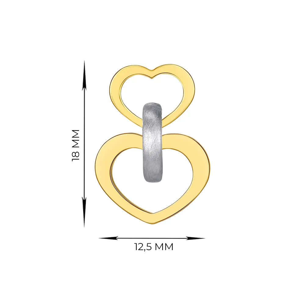 Silver Heart Drop Earrings in a Combined Color with a Matt Finish ORT_9175-E/16