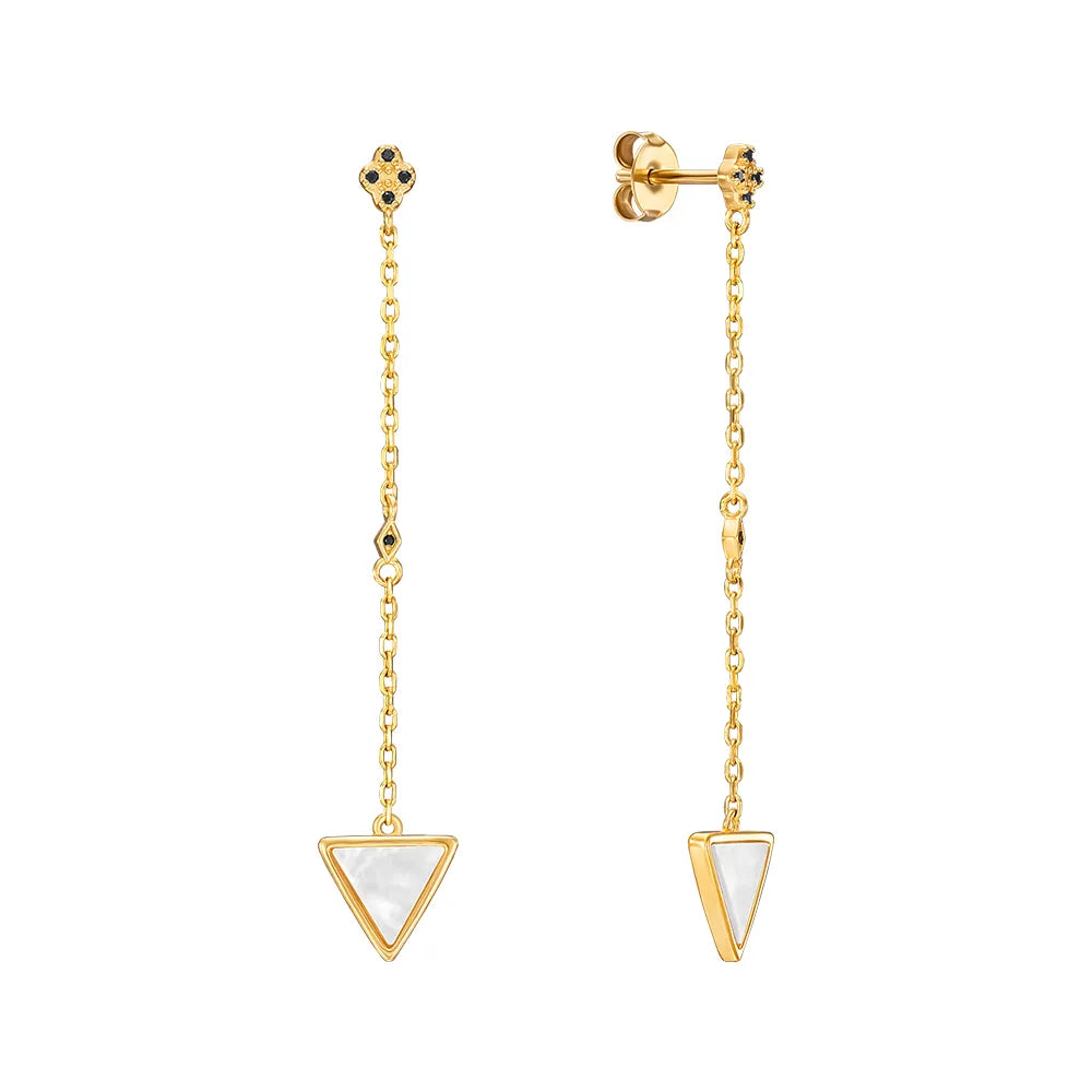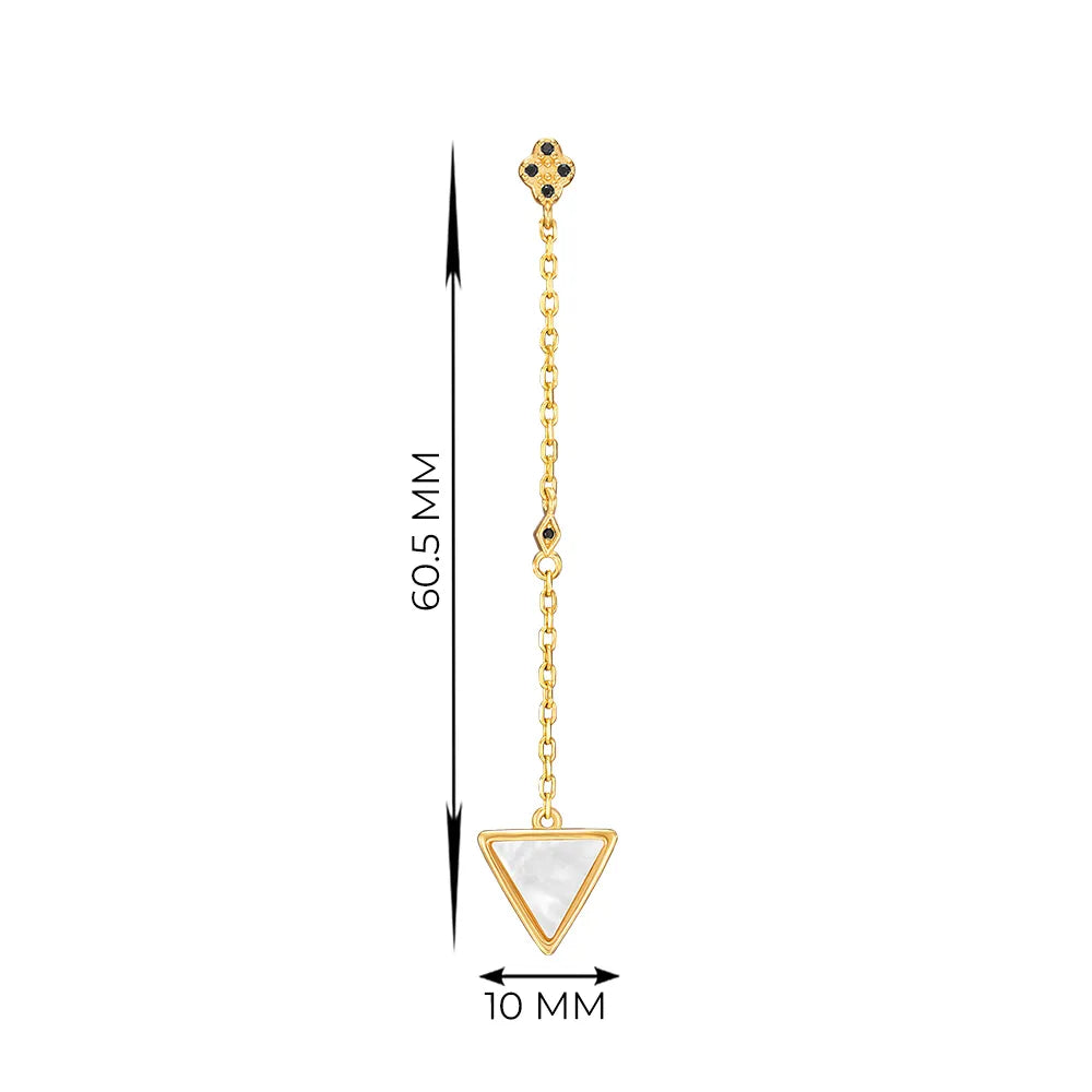 Silver drop earrings in yellow gold plating with black cubic zirconia and mother-of-pearl TE-3364-GOLD-E/20/21192