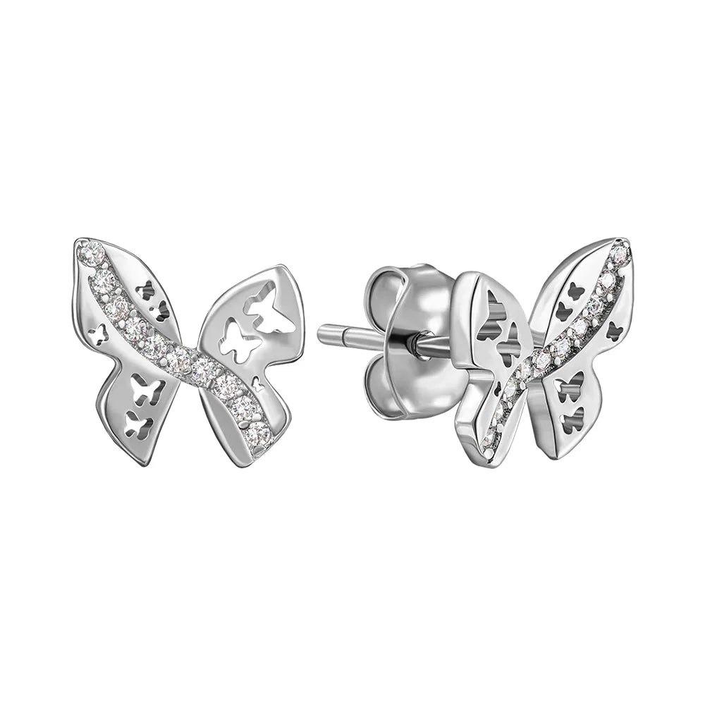 Silver Butterfly Stud Earrings with Cubic Zirconia 2S14284-E/12/1