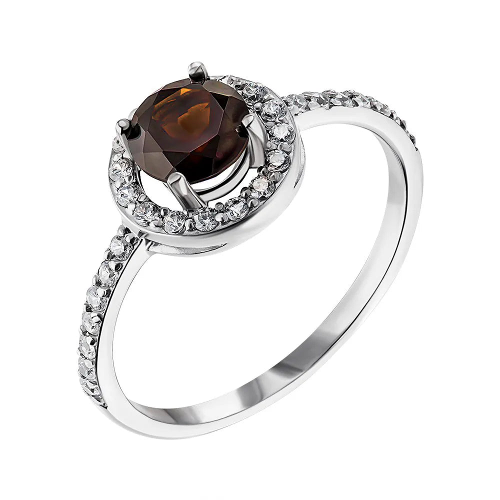 Pierścionek AGNI ze srebra z rauchtopazami i cyrkoniami sześciennymi 1596/9р-QSM