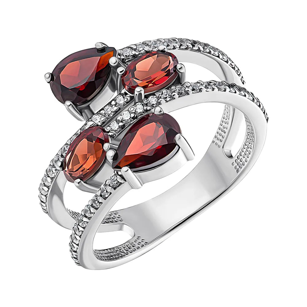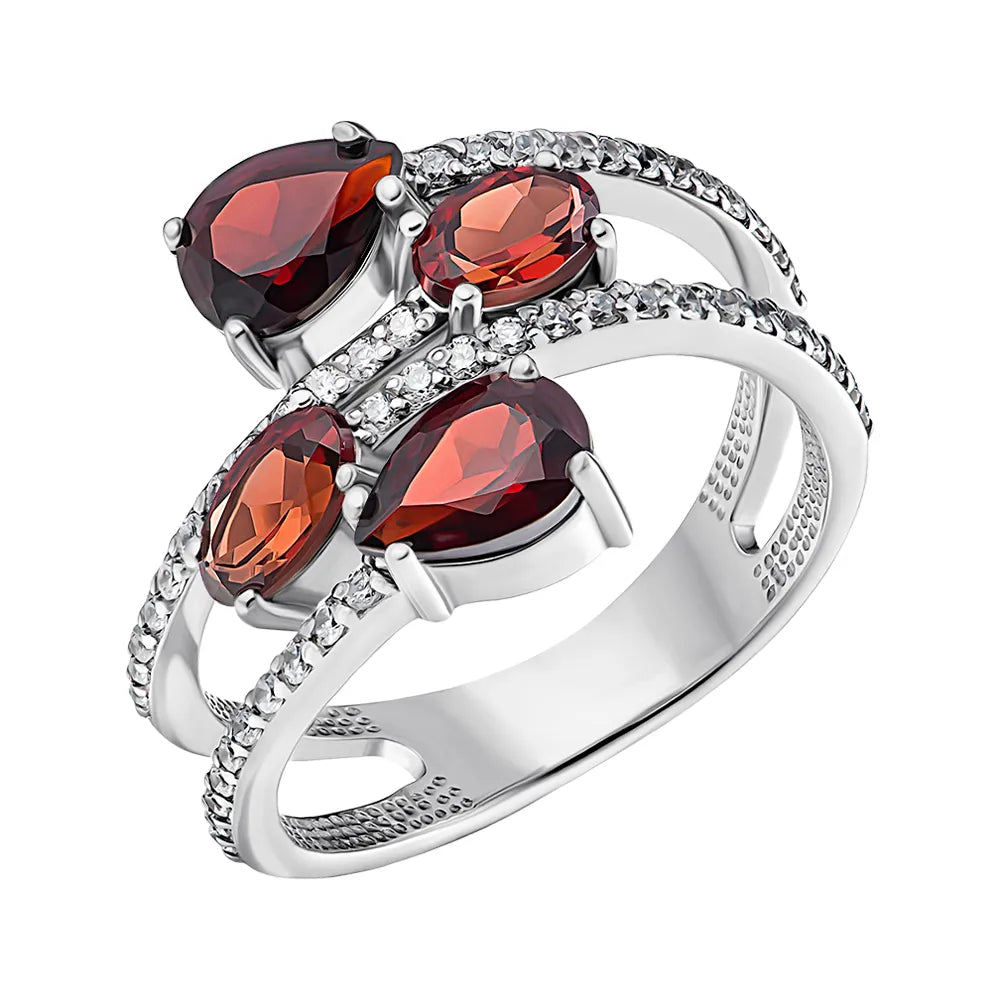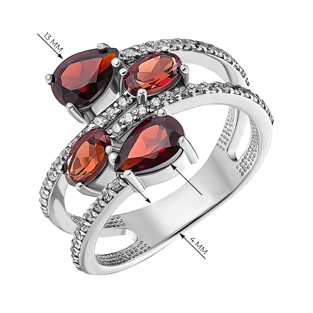 Pierścionek srebrny z granatami i cyrkoniami 00950/12/1/6637