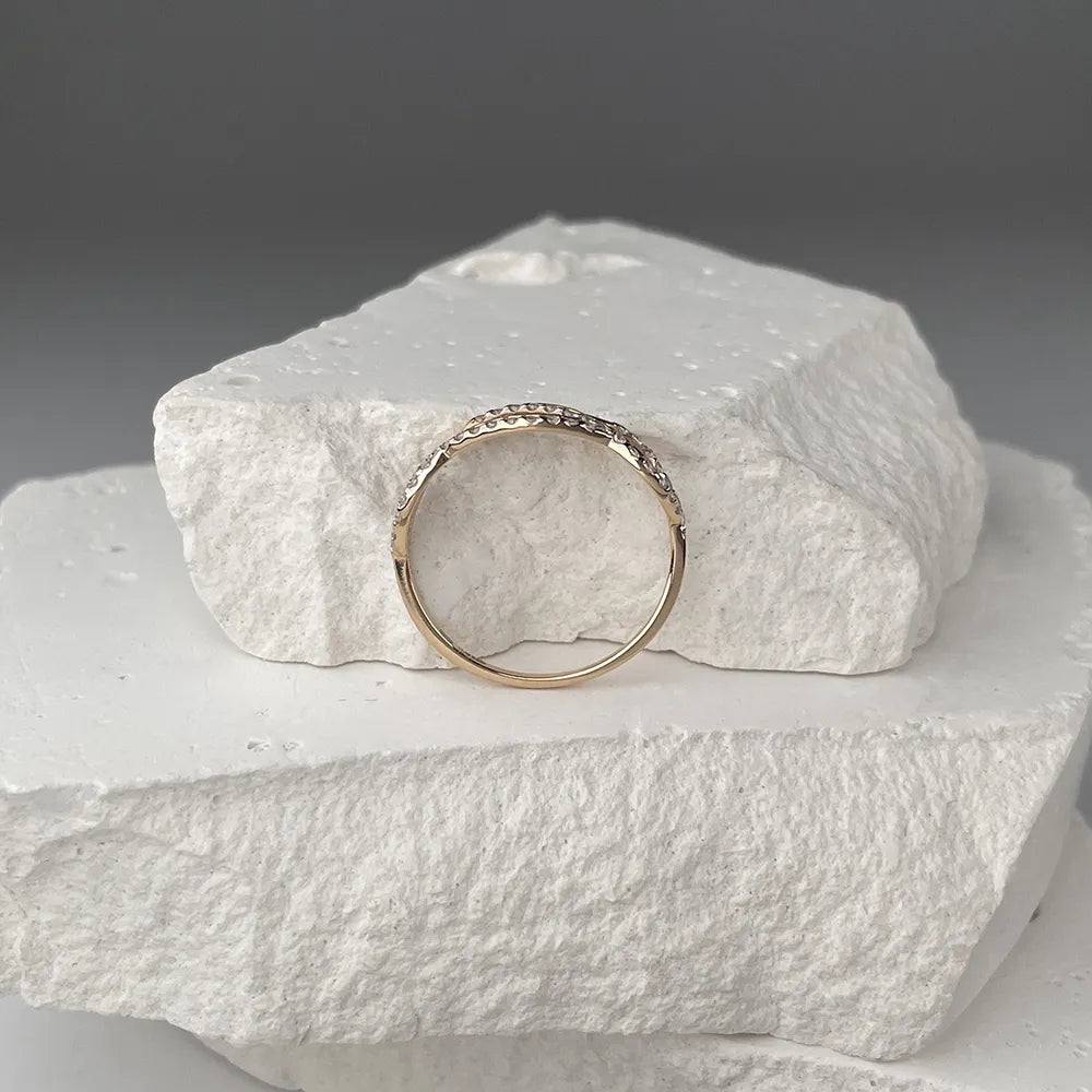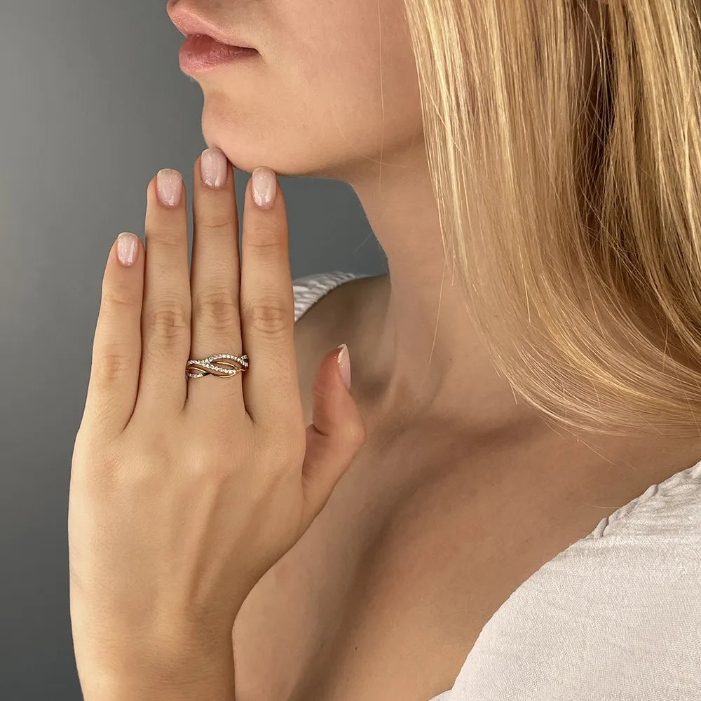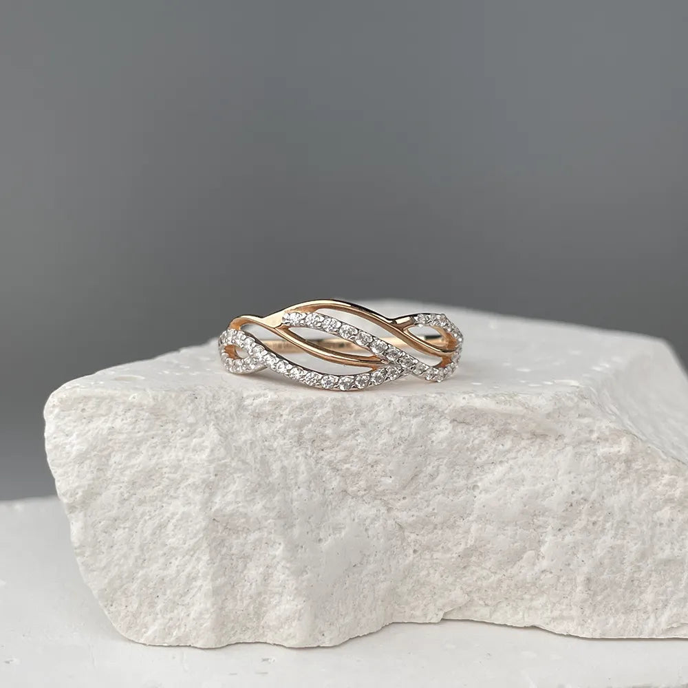 Pierścionek z czerwonego złota z cyrkoniami i rodowaniem