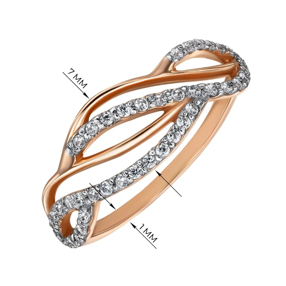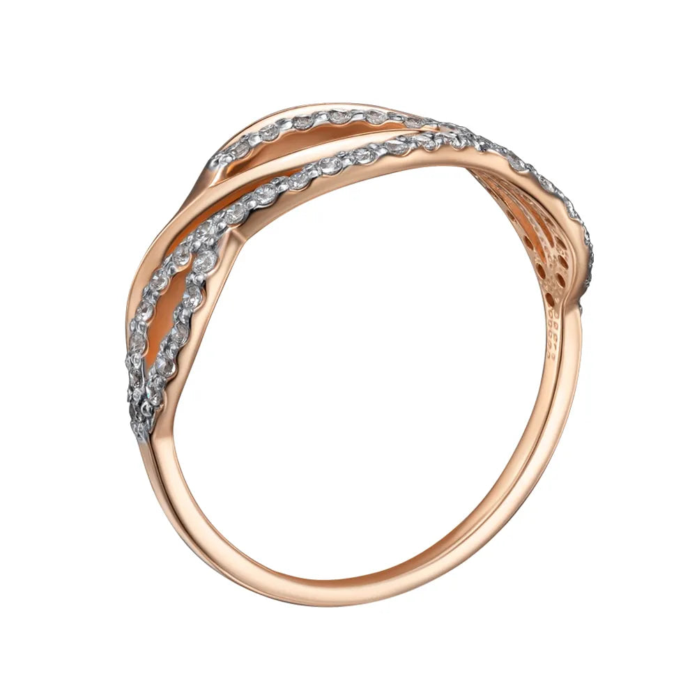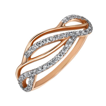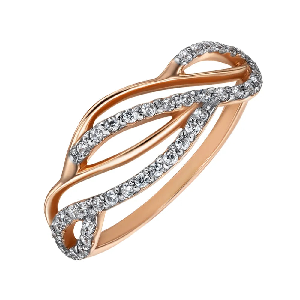 Pierścionek z czerwonego złota z cyrkoniami i rodowaniem 12079