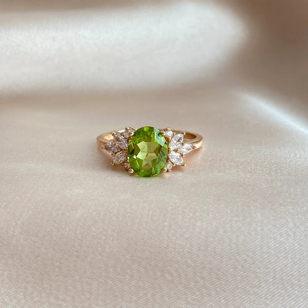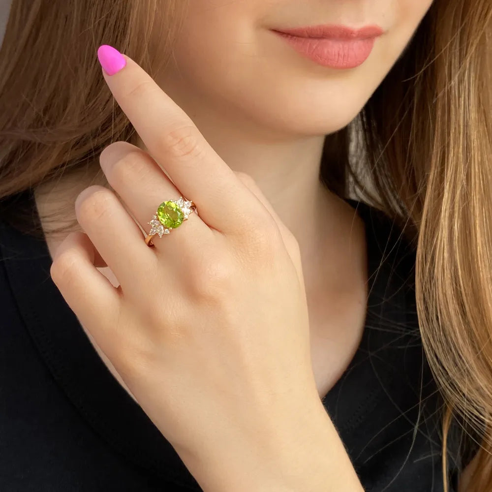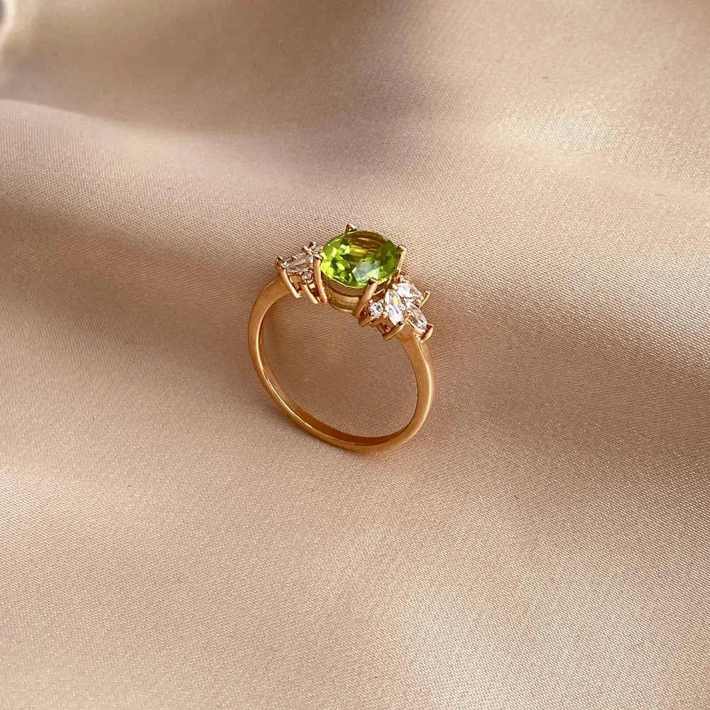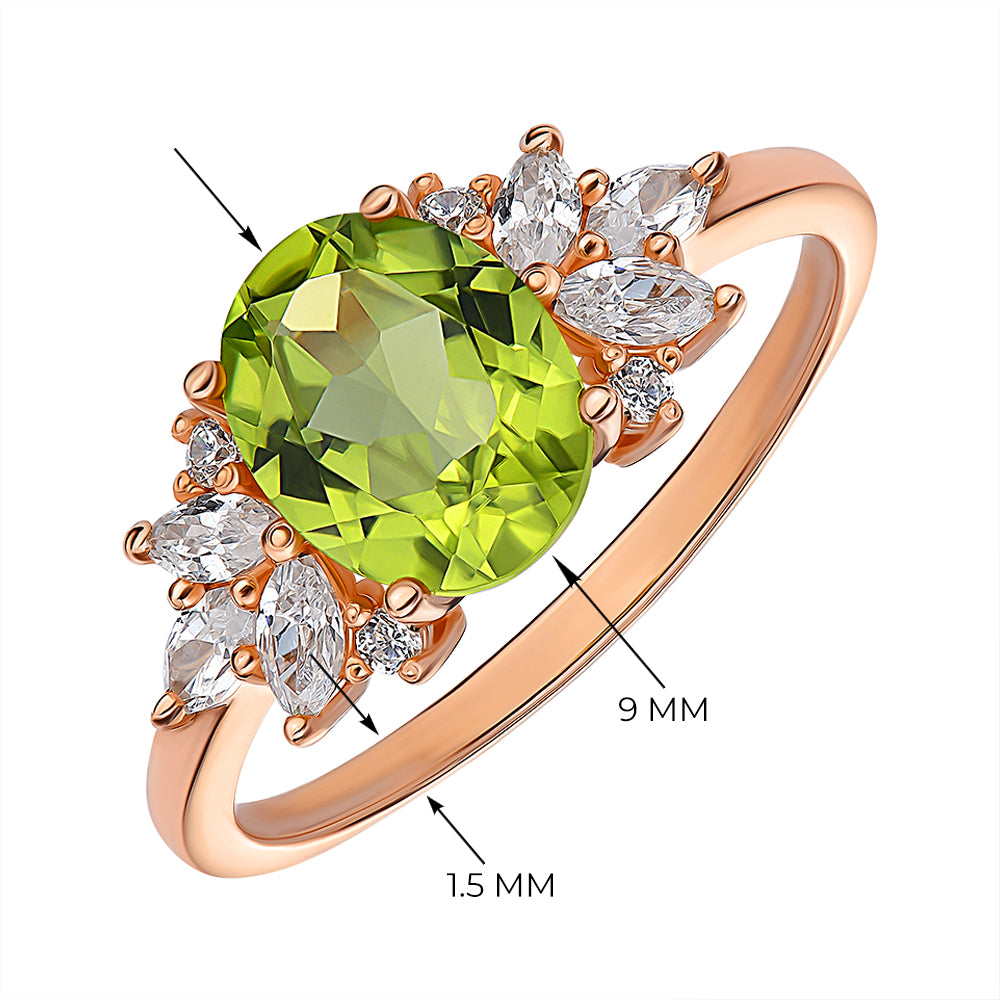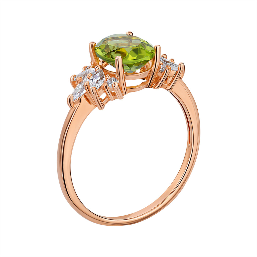 Pierścionek z czerwonego złota z chryzolitem i cyrkoniami 530281/01/0/6694