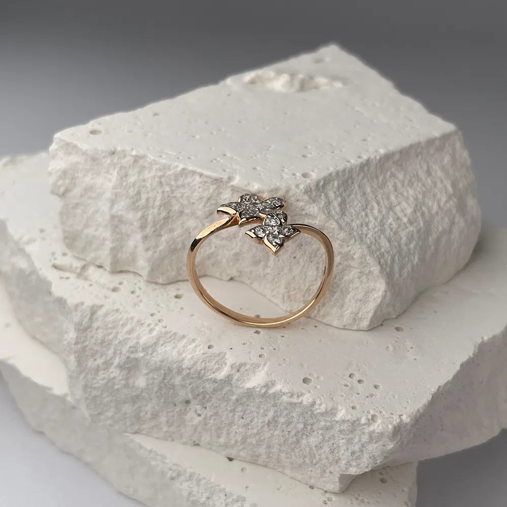 Pierścionek otwarty ze złota łączonego z cyrkoniami 13538/01/1/944