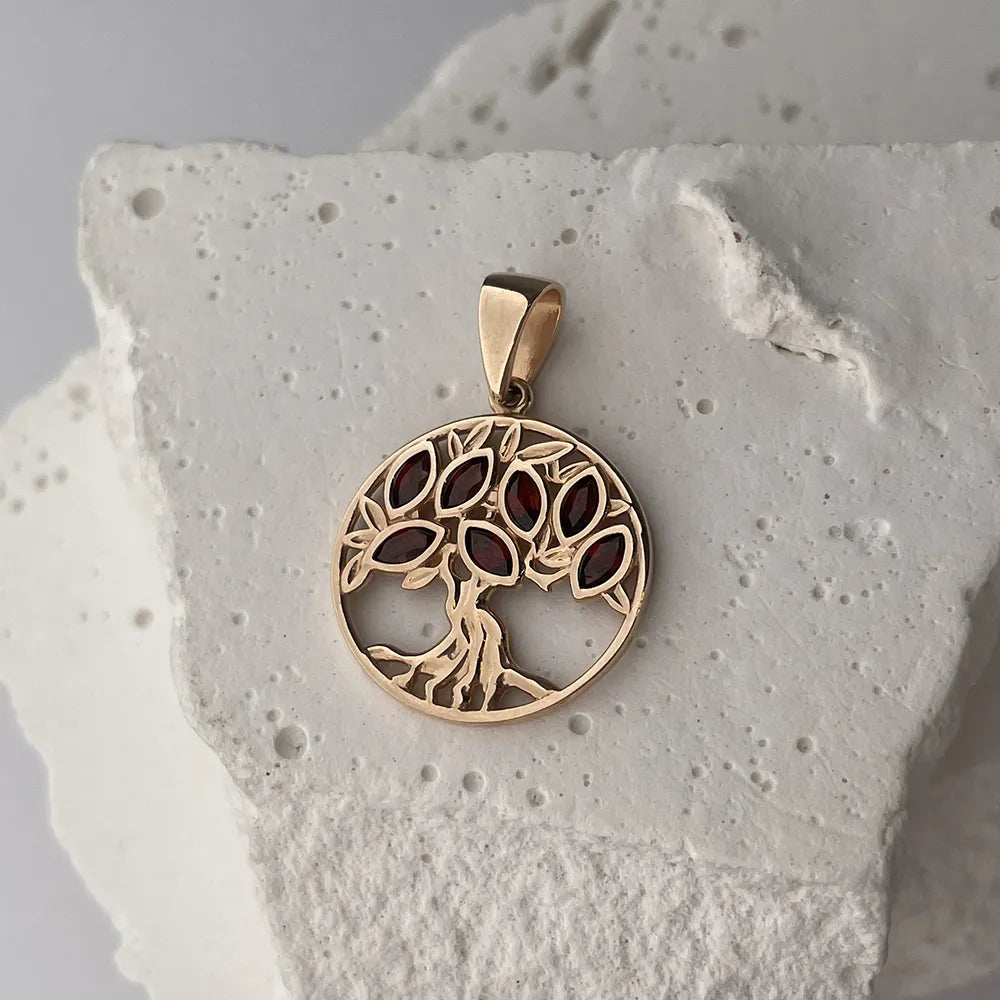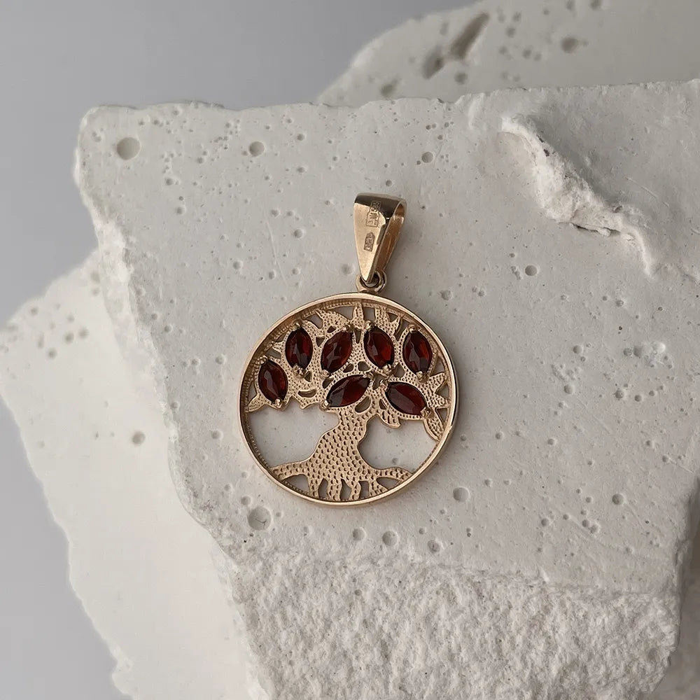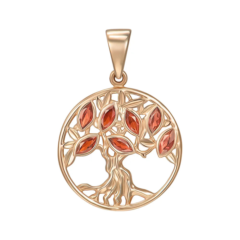 Wisiorek Drzewo Życia wykonany z czerwonego złota z granatami 550076/01/0/6561