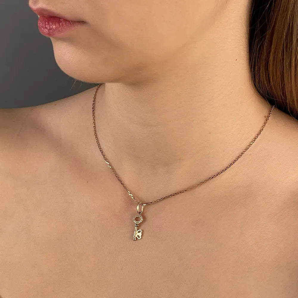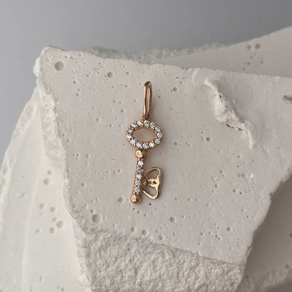 Zawieszka klucz w kolorze czerwonego złota z cyrkonią G-3941-P/01/1