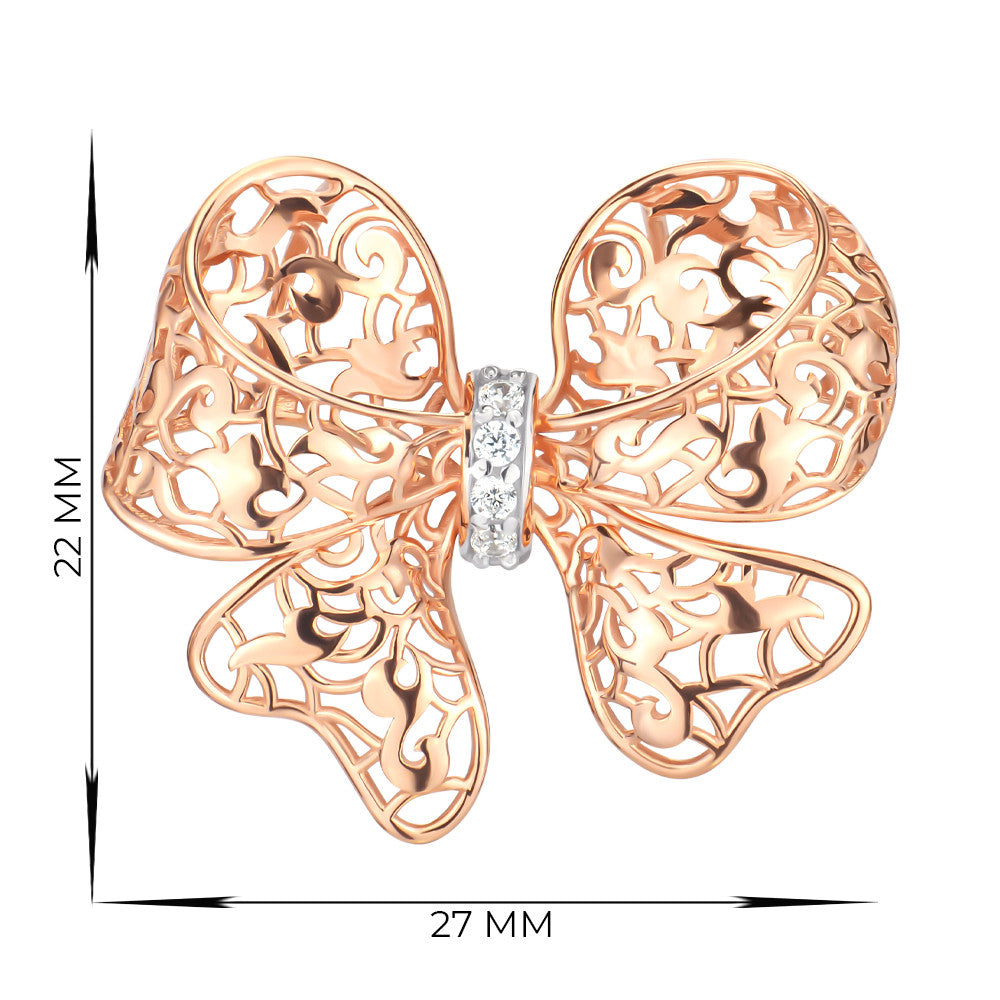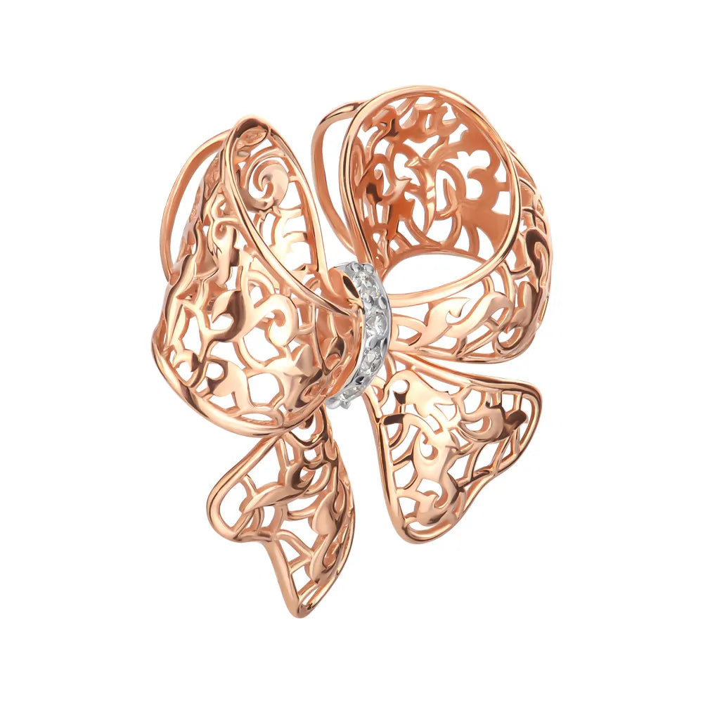 Wisiorek w kształcie kokardy jest gotowy, aby stać się legendą kolekcji poświęconej czarującej Tinie Karol. Absolutna delikatność złota, gładkie krzywizny, lśniące cyrkonie - czyż to nie apogeum kobiecych marzeń? Wisiorek UZ23249803 będzie tym właśnie szczegółem, który zamieni wizerunek w lekki i atrakcyjny. Ścieżka lśniących cyrkonii jest zarysowana rodem - szlachetnym białym metalem. Obok niego kamienie nabierają szczególnej szlachetności, a produkt - uroczego akcentu. Wyjątkowość wisiorka polega na tym, że jego kształt i kontury przypominają jedwabną wstążkę. Ale tylko metal może wyglądać tak jasno i romantycznie w tym samym czasie. Złoto płynie w figlarnych lokach, które wyróżniają ten produkt od wszystkich innych. Zespół ukrzoloto.ua zakochał się w wisiorku od pierwszego wejrzenia. Jego styl i wykonanie idealnie nadają się do dekoracji dekoltu pięknej, odnoszącej sukcesy dziewczyny.