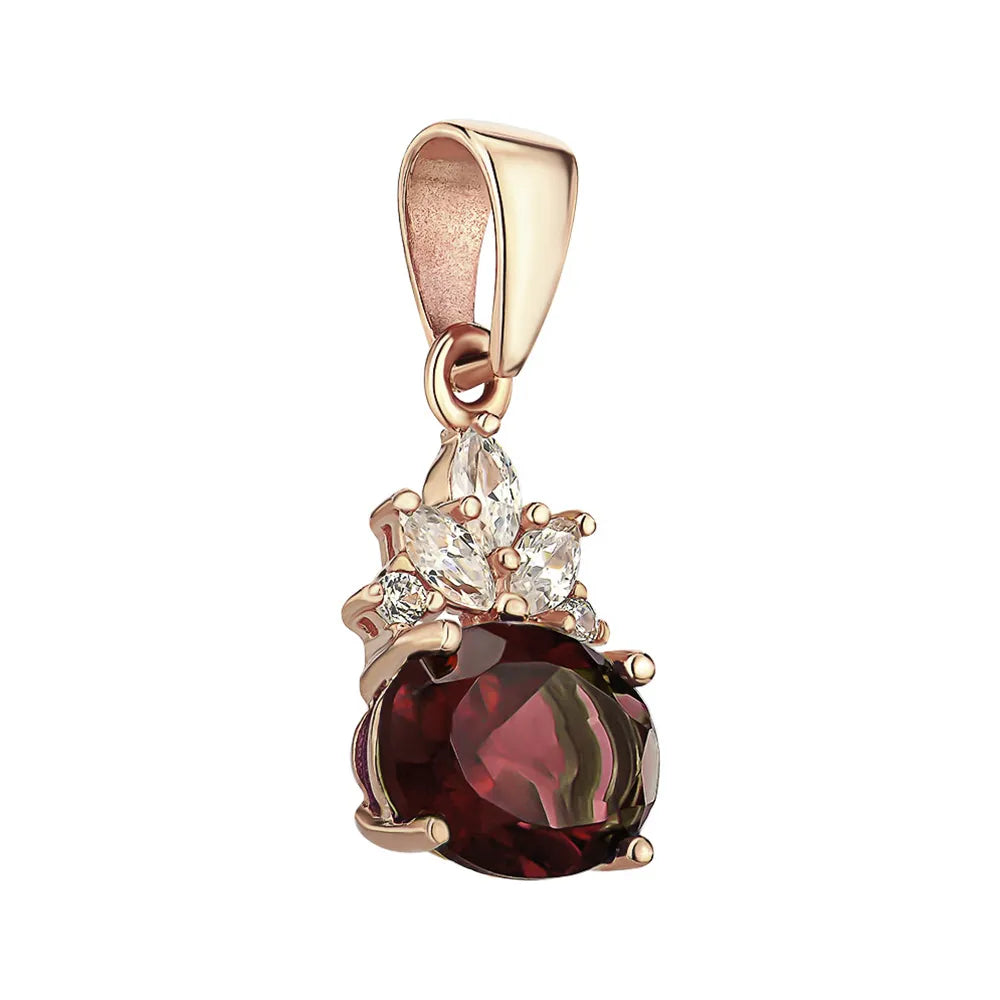 Wisiorek z czerwonego złota z granatem i cyrkoniami 550079/01/0/6598