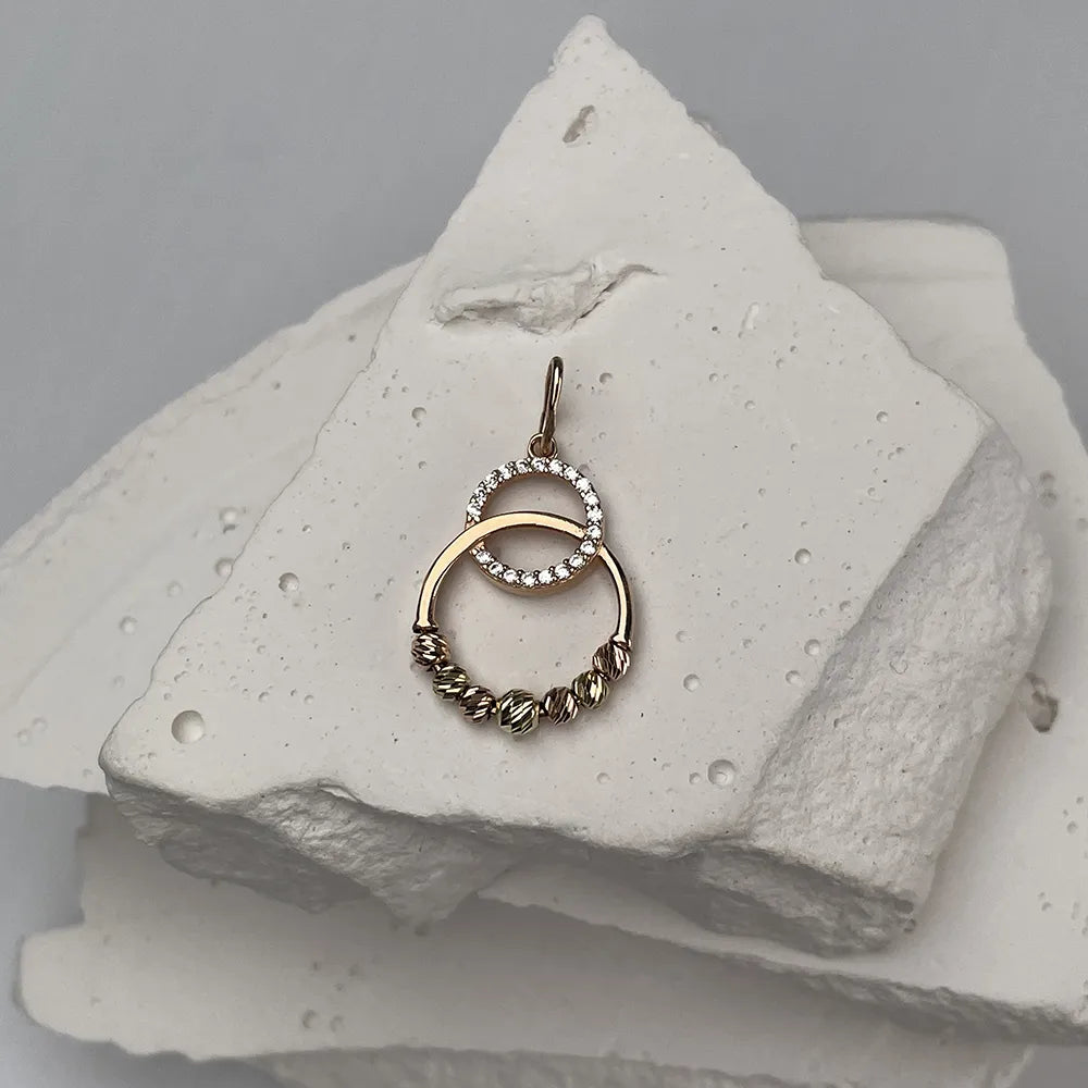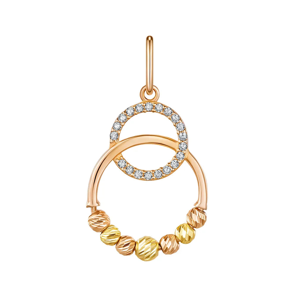 Wisiorek złoty łączony z cyrkoniami i fasetowanymi kulkami F-1102-P/83/1
