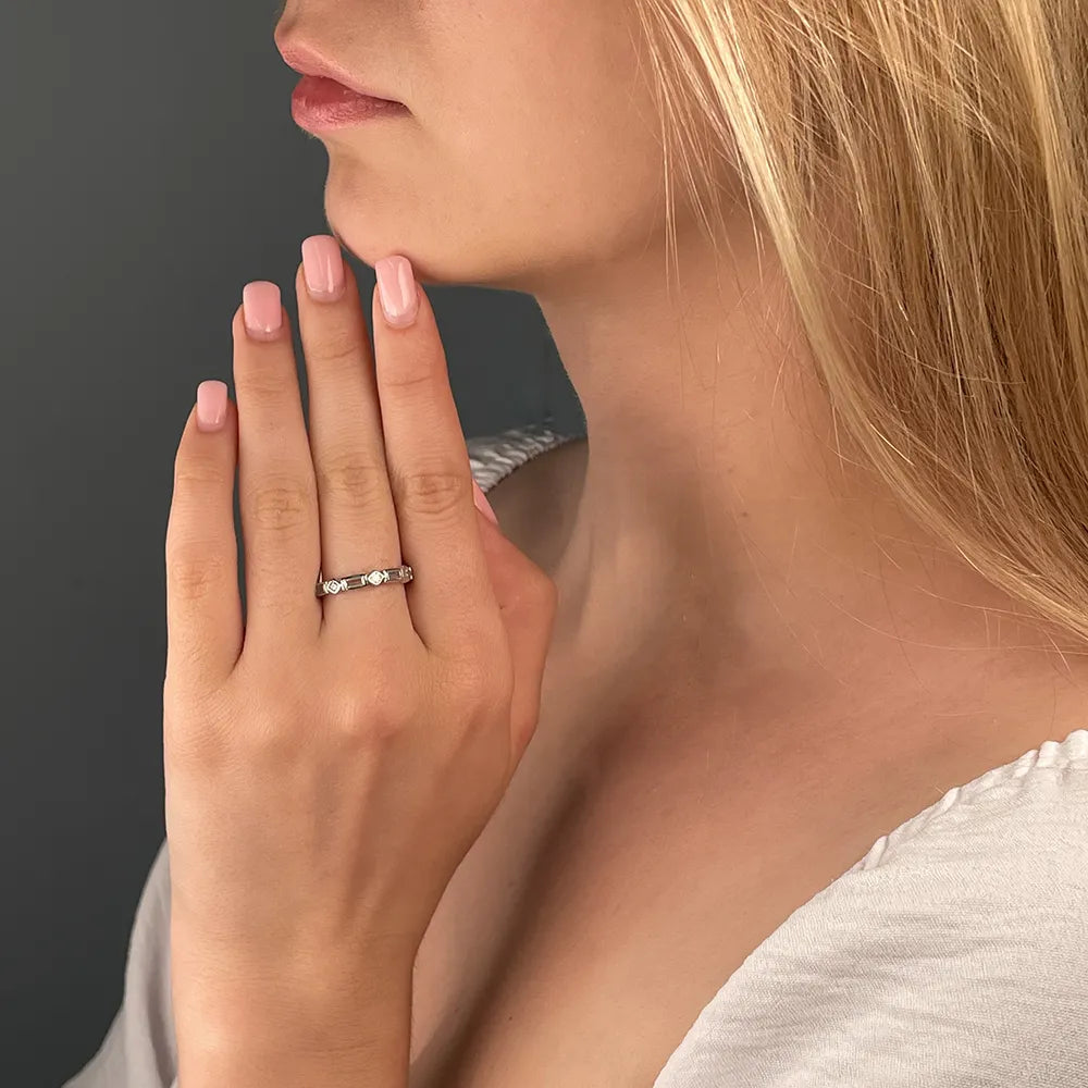 Pierścionek ze srebra próby 925 to stylowy i elegancki element biżuterii, który nadaje się na każdą okazję. Wykonany z wysokiej jakości srebra, jest bardzo trwały i może zachować swój blask przez wiele lat. Jego klasyczny design sprawia, że ​​pierścionek jest wszechstronny, co pozwala na łączenie go z inną biżuterią. Srebro nadaje pierścionkowi elegancki wygląd, dzięki czemu jest idealnym dodatkiem do Twojego wyglądu. Świetny wybór dla tych, którzy cenią styl, trwałość i luksus w każdym elemencie. Biżuterię uzupełnia wkładka, która nadaje jej szczególnego uroku i wyrafinowania.