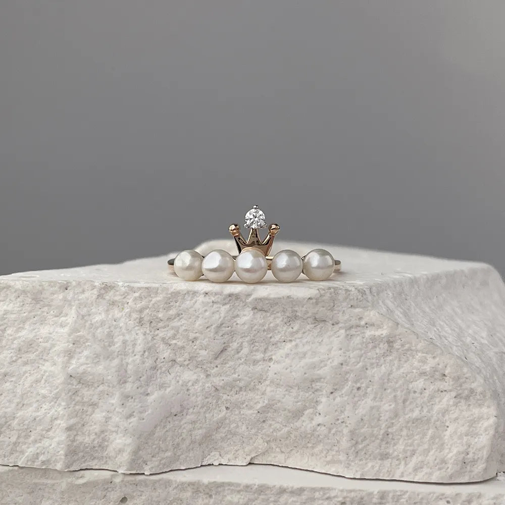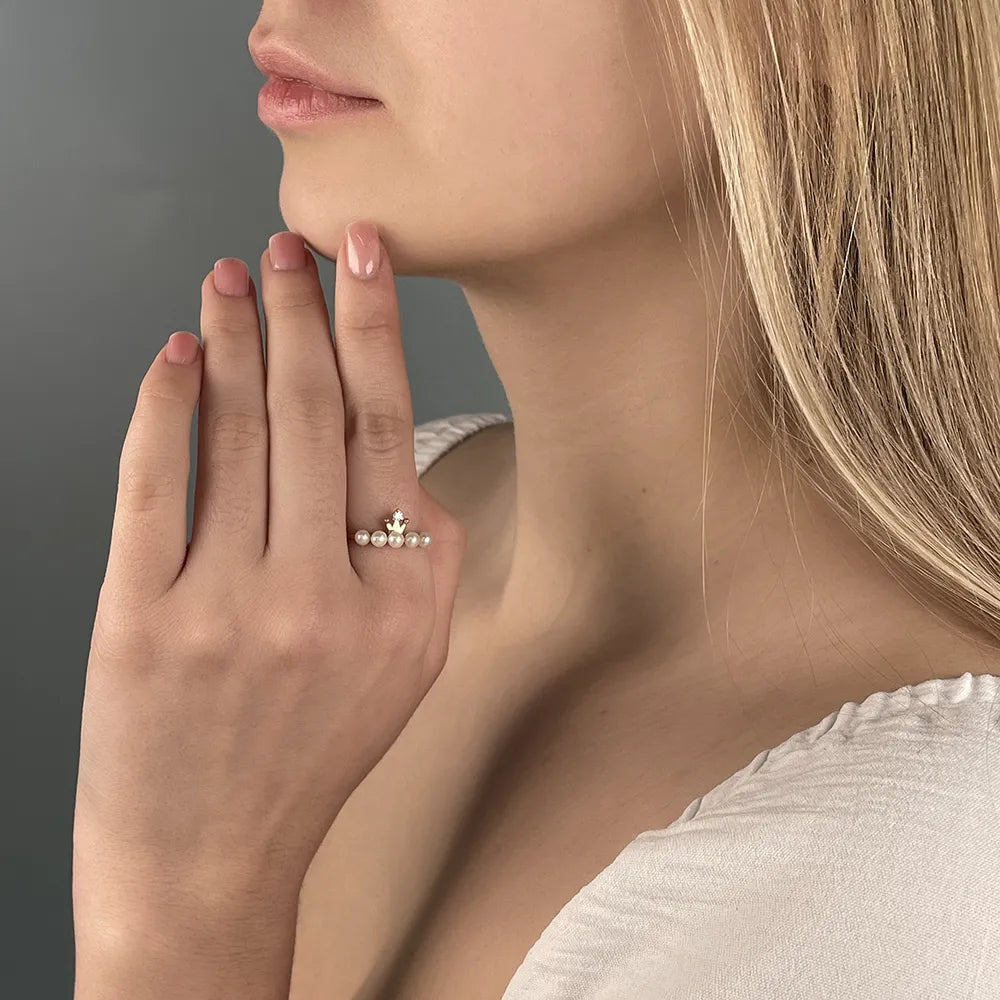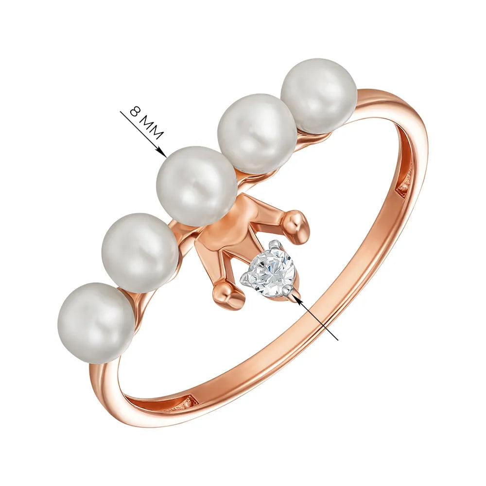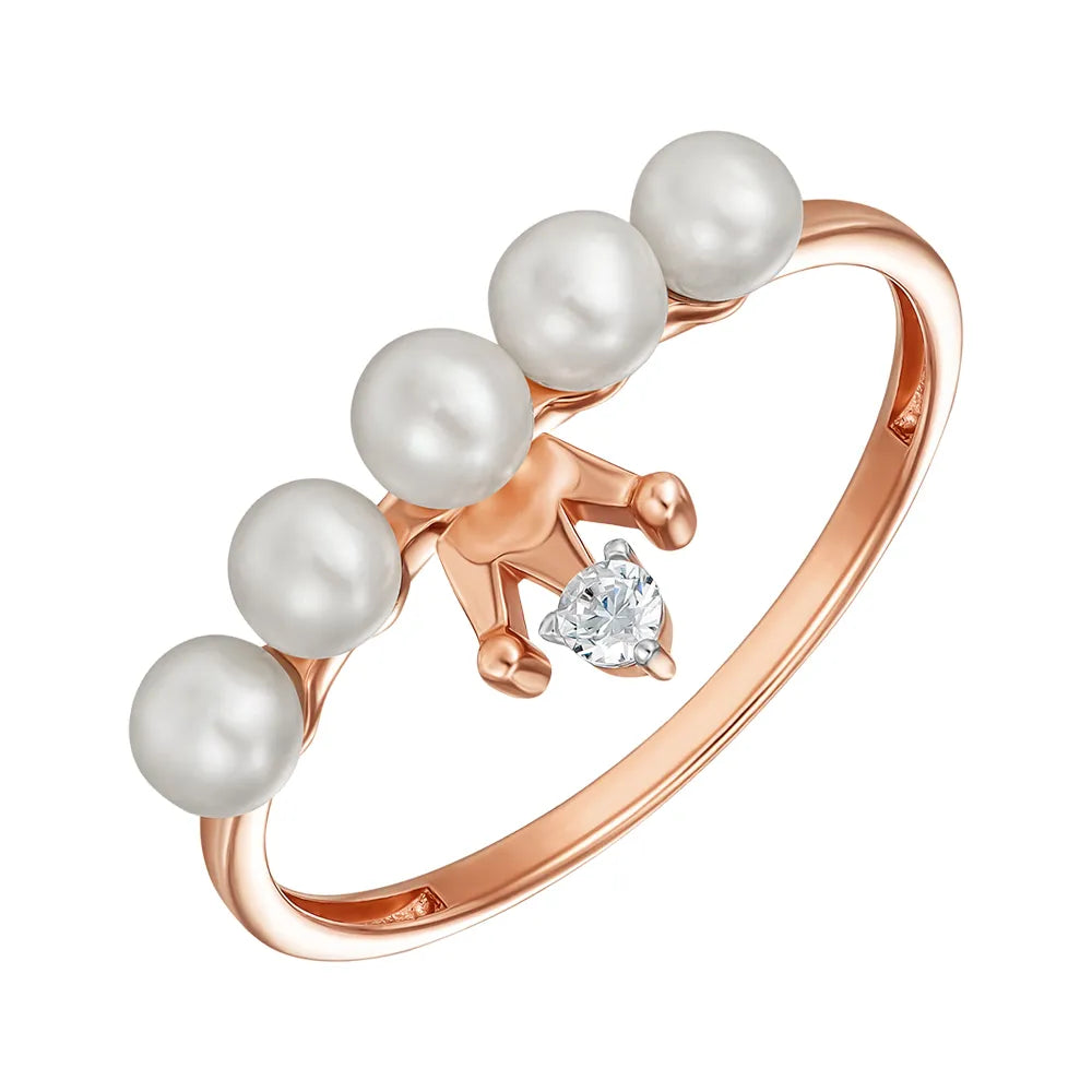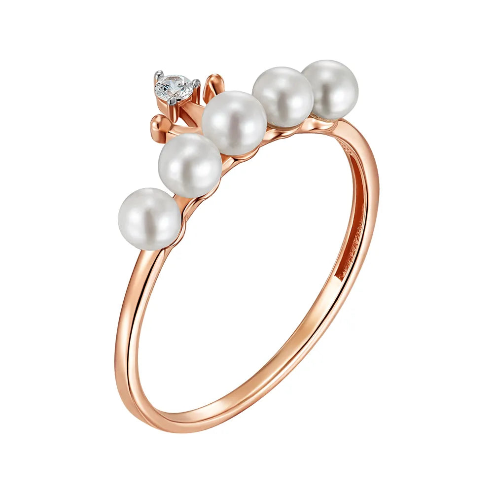 Pierścionek z czerwonego złota z perłami i cyrkoniami 18568/01/1/4541