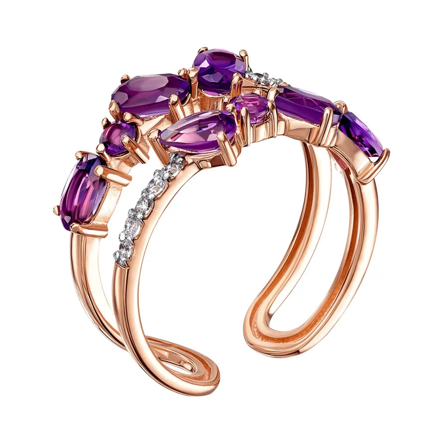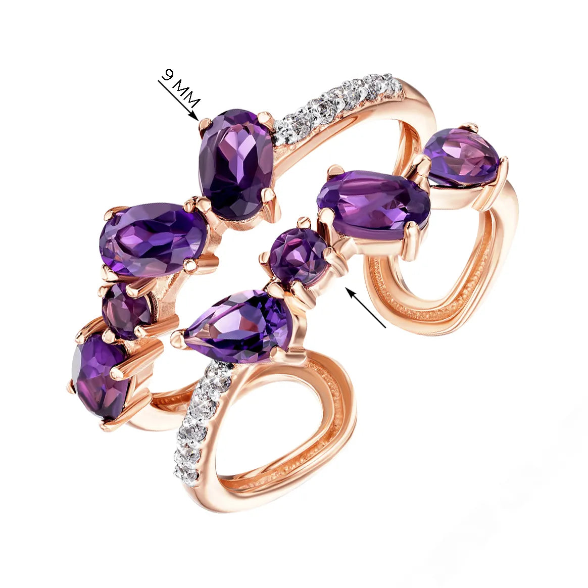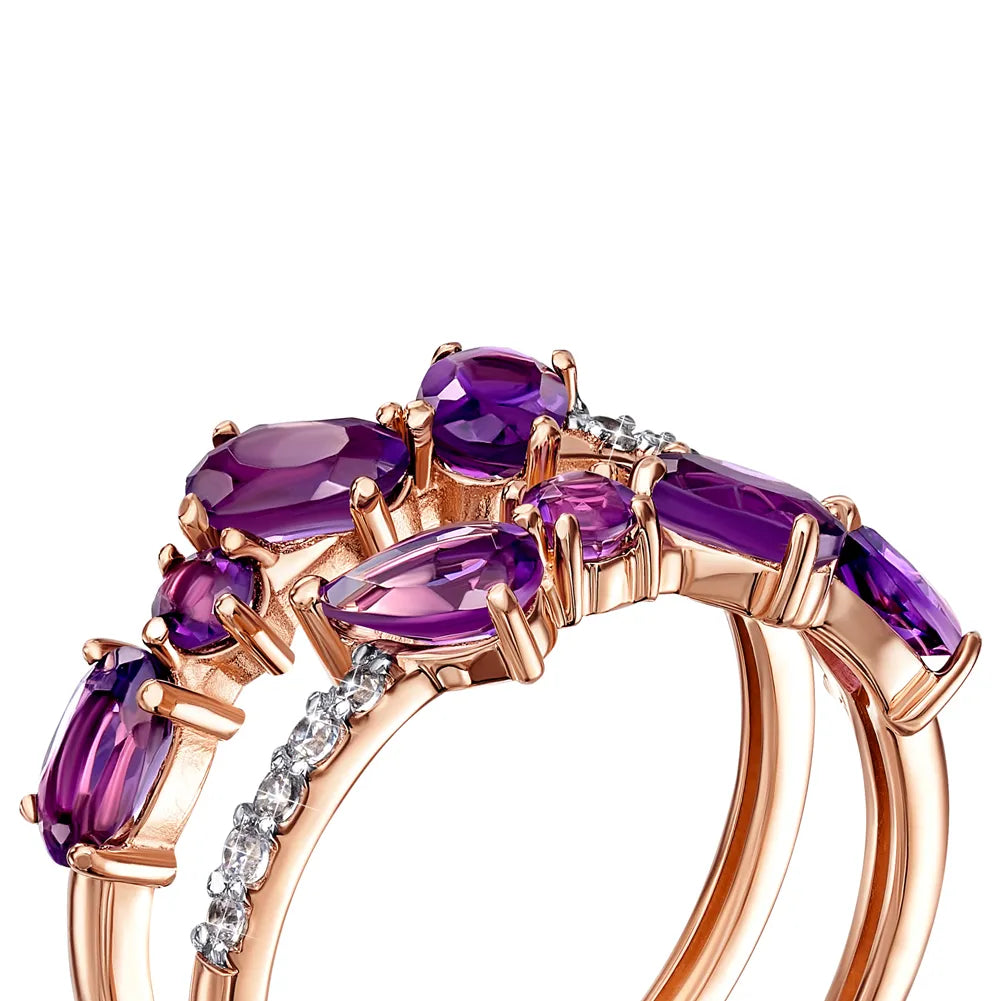 Pierścionek z czerwonego złota z ametystem i cyrkoniami 530293/01/1/6663