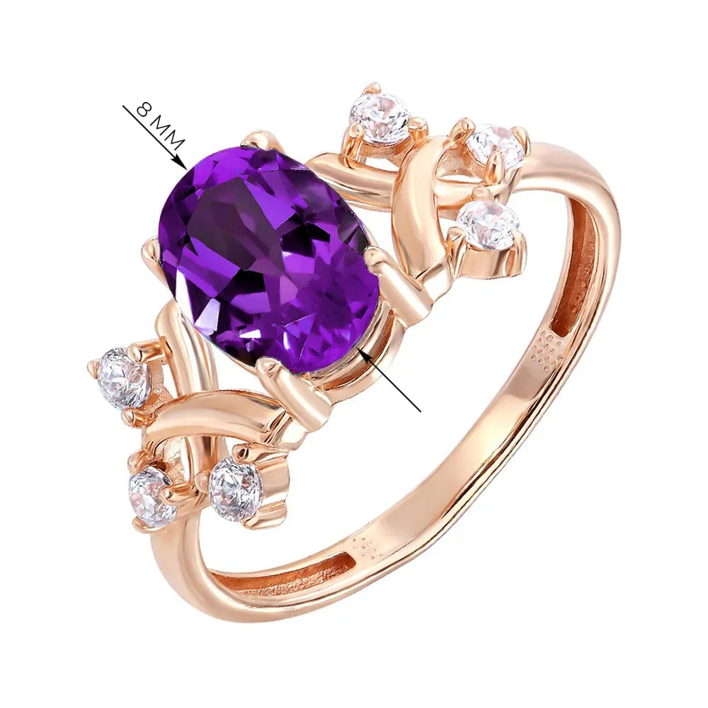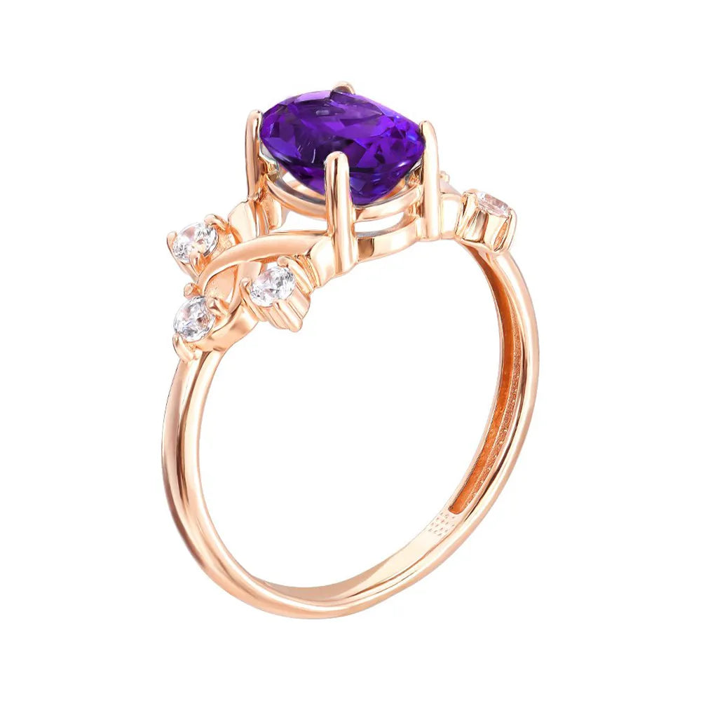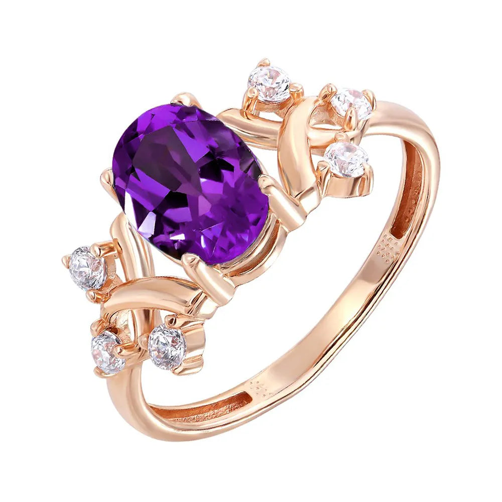 Pierścionek z czerwonego złota z ametystem i cyrkoniami 530296/01/0/5213