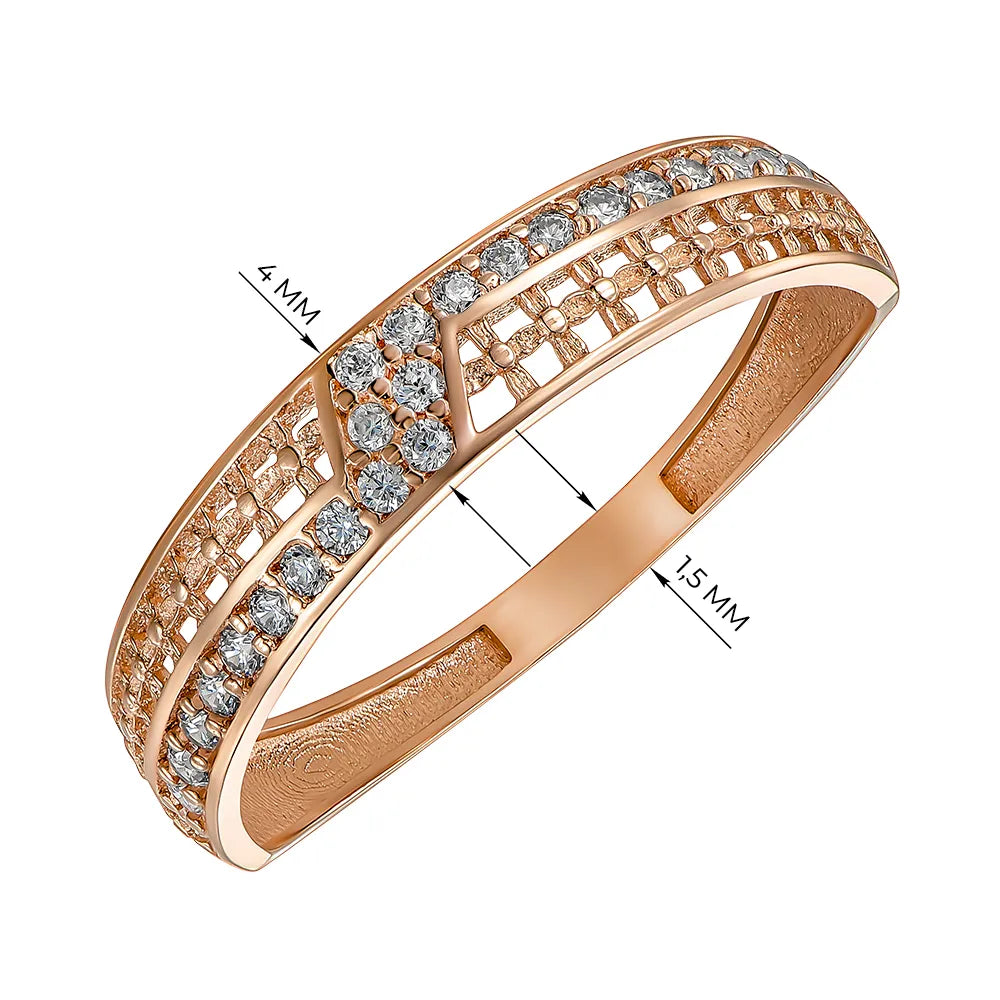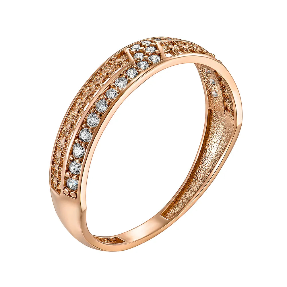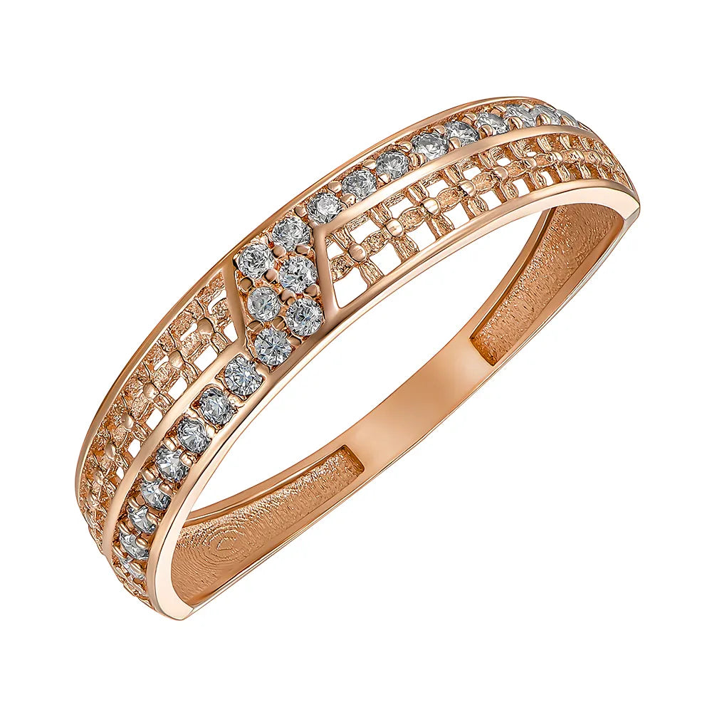 Pierścionek z czerwonego złota z cyrkoniami P-R2039-1-R/01/1