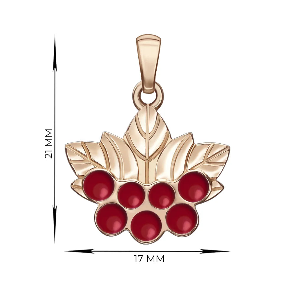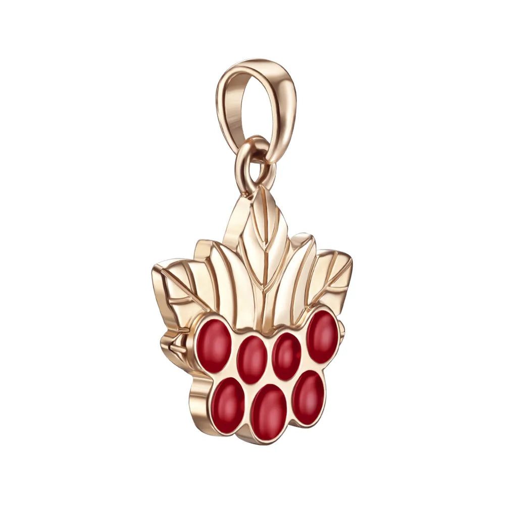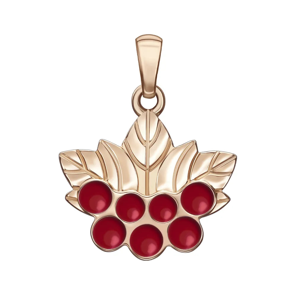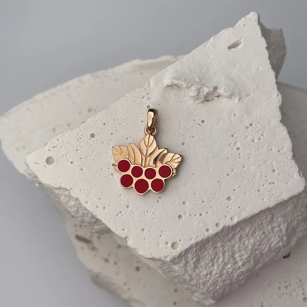 Projekt i materiałyTen elegancki wisiorek o wadze 1,48 g wykonany jest ze szlachetnego czerwonego złota próby 585, którego ciepły odcień symbolizuje namiętność i oddanie. Centralnym elementem dekoracji jest wizerunek gałązki kaliny zwieńczonej jagodami wykonany z czerwonej emalii o łącznej wadze 0,117 karatów.