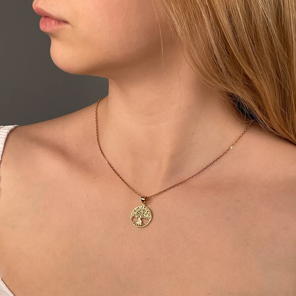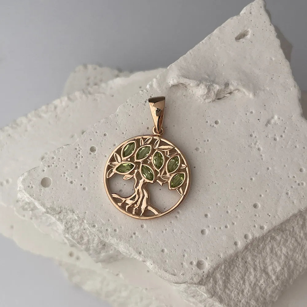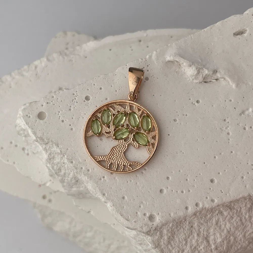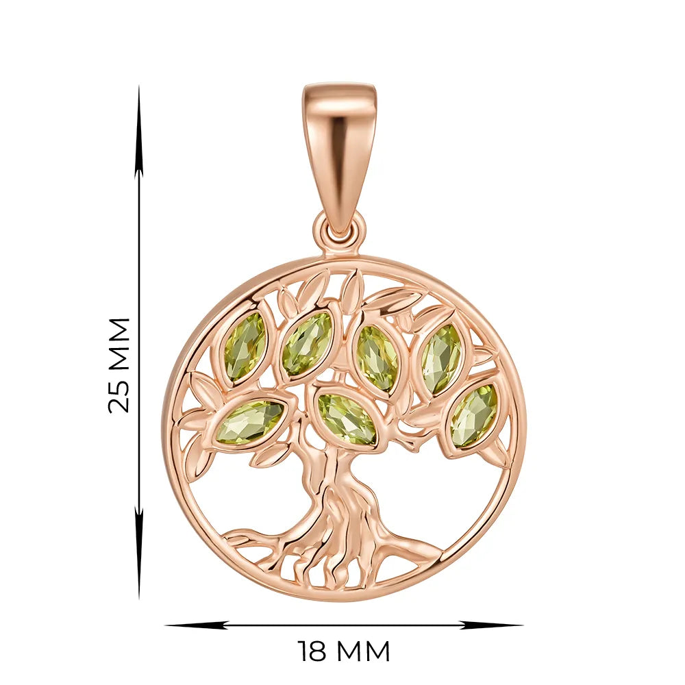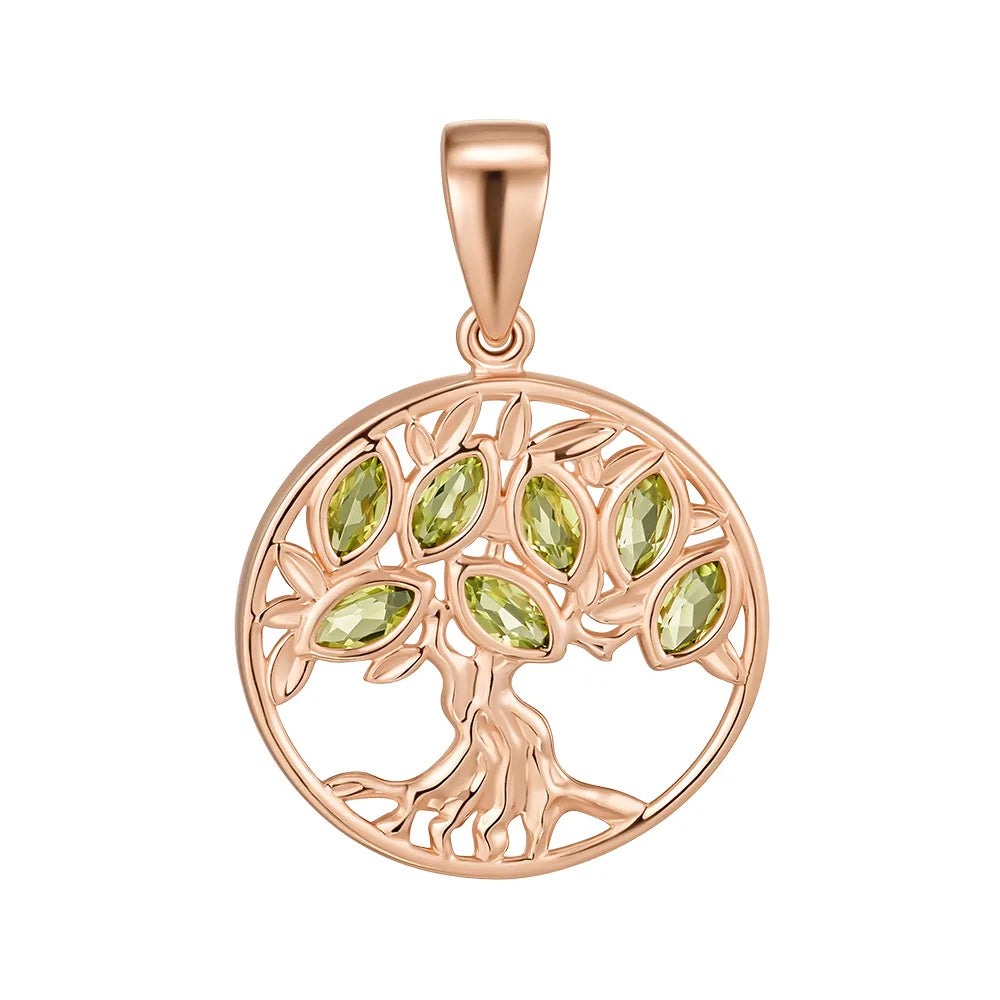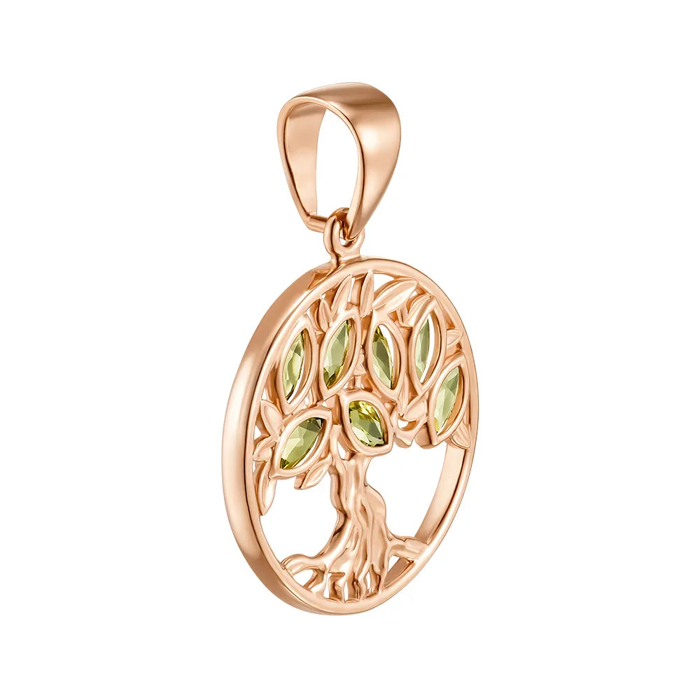 Wisiorek Drzewo Życia wykonany z czerwonego złota z chryzolitami 550076/01/0/16001